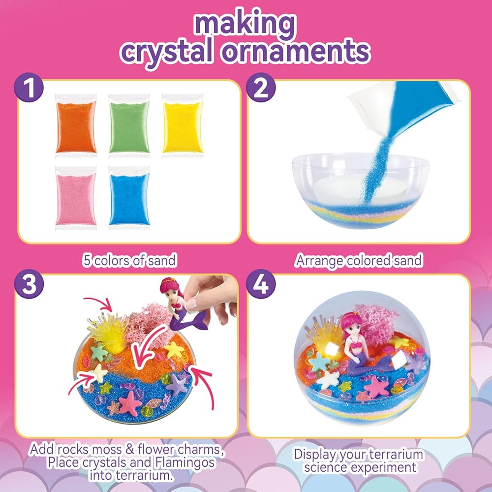 🧜♀️Wonderful Boys & Girls Gift : Our mermaid crystal growing kit is easy to solve the problem of choosing a gift difficulty. Good choice for Christmas, and birthday gifts. And with our grow-your-own crystals kits, your children can easily customize it to be something personal that they will love.