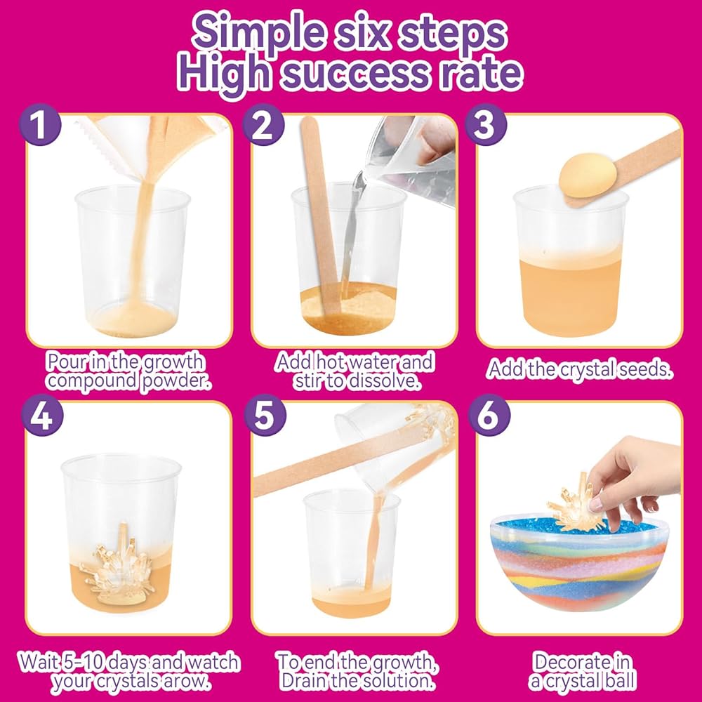 🧜♀️Safe and Non-Toxic : This kit is made with safe and non-toxic materials.We provide white and yellow, 2 crystal seeds, enough for kids to practice the experiments once or twice before growing a spectacular and perfect crystal.