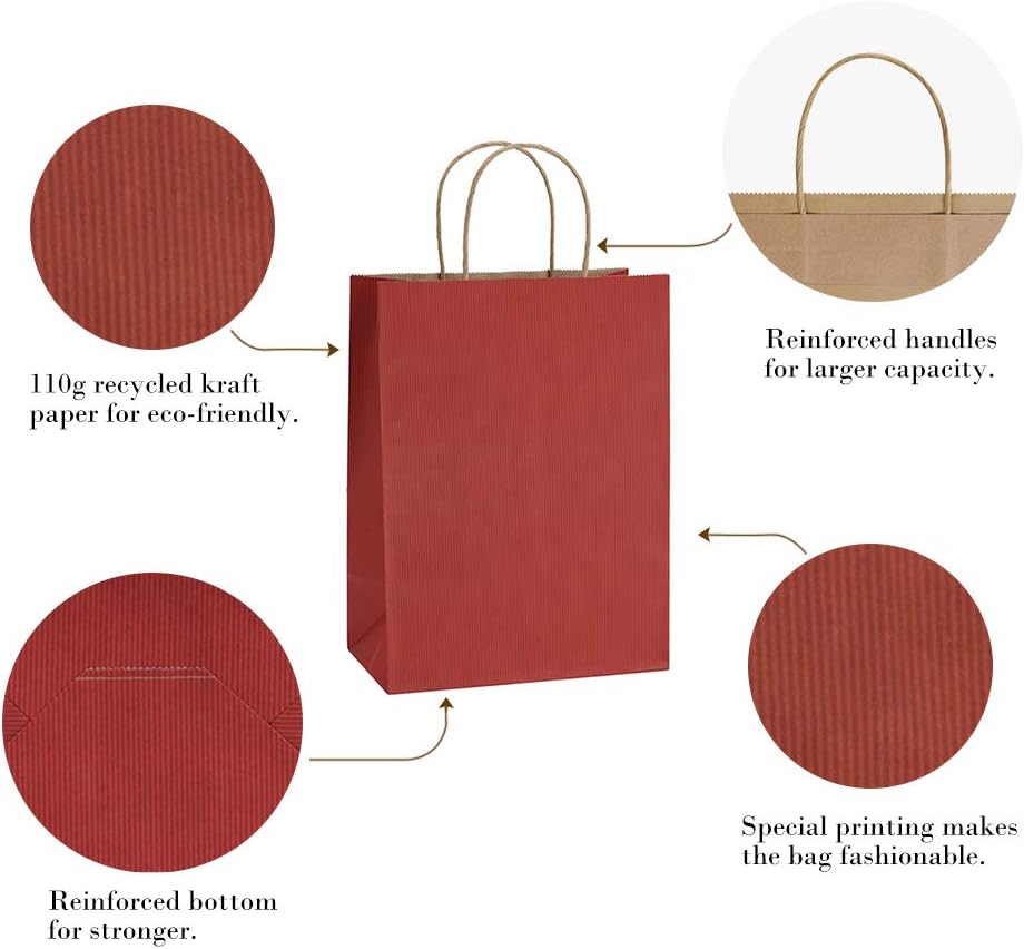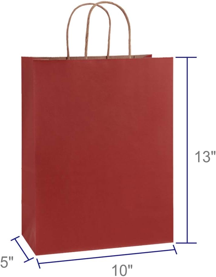 BagDream Gift Bags 10x5x13 25Pcs Kraft Paper Shopping Bags with Handles, for Gifts, Business, Merchandise, Retail, Christmas Wedding Party Favor, Red Recycled Paper Sacks