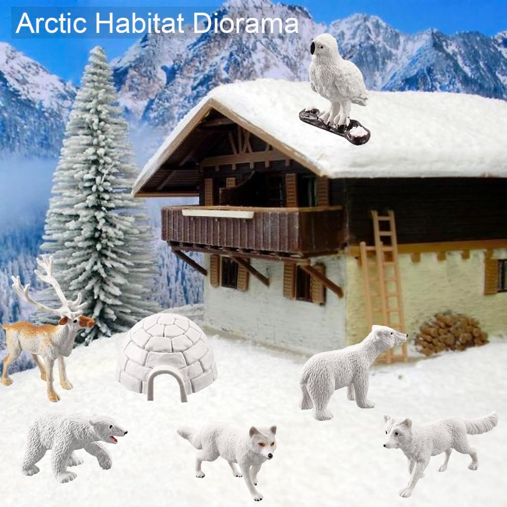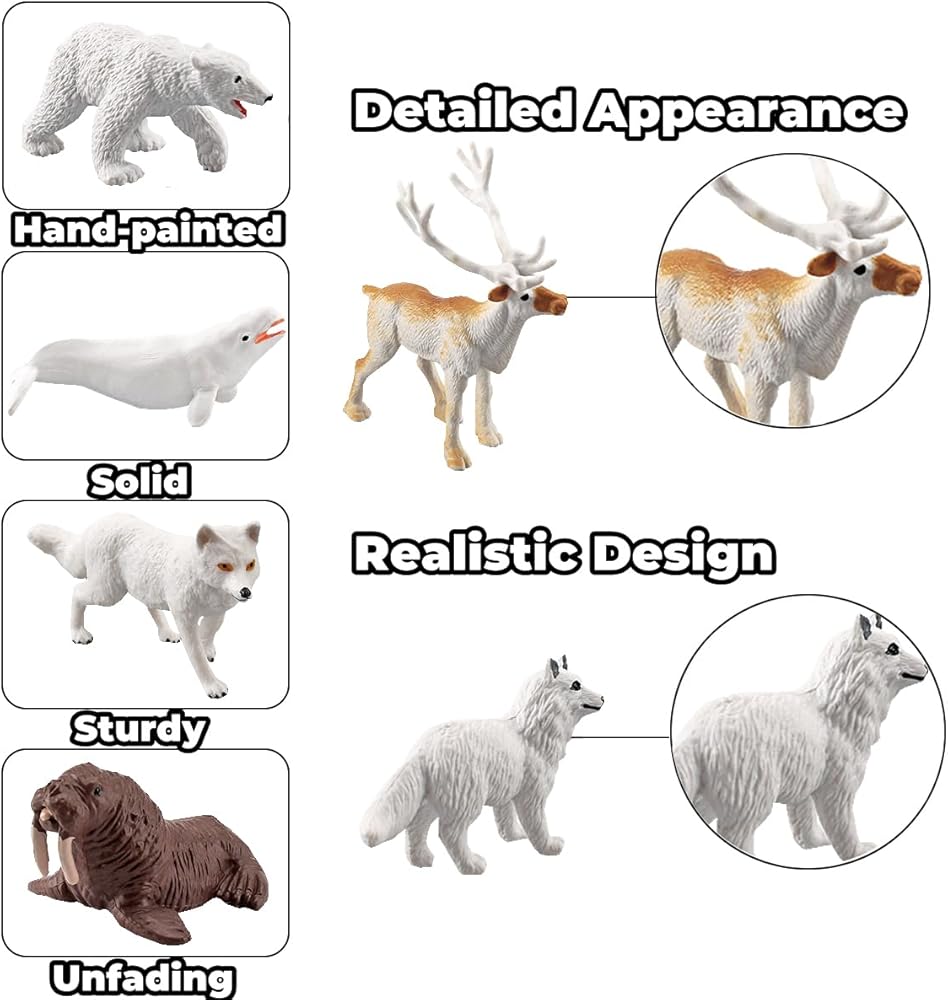 مجموعة شخصيات حيوانات القطب الشمالي 18 قطعة من باتوهو، مجموعة تماثيل حيوانات قطبية واقعية من البلاستيك لحيوانات القطب الشمالي ديوراما ديكورات للأطفال في عيد ميلاد الأطفال، مجموعة ألعاب