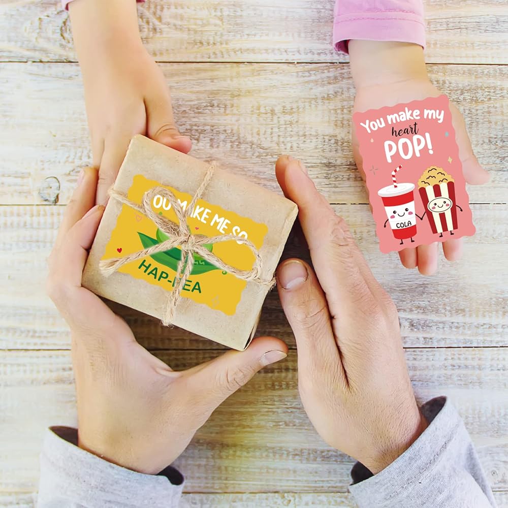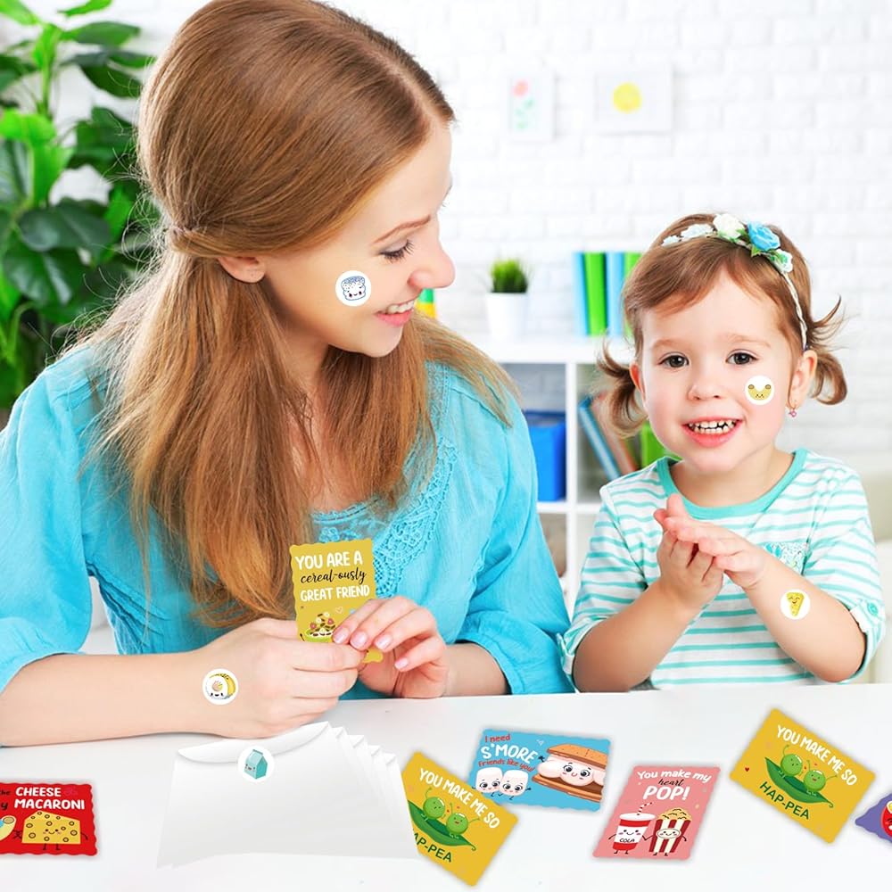 Assorted Valentines Day Cards -- Our valentines cards for kids classroom feature 7 assorted designs with a simple sweet message and super punny! This cute valentines greeting cards set looks like tempting snack picks which will make all the kids in the class start salivating.