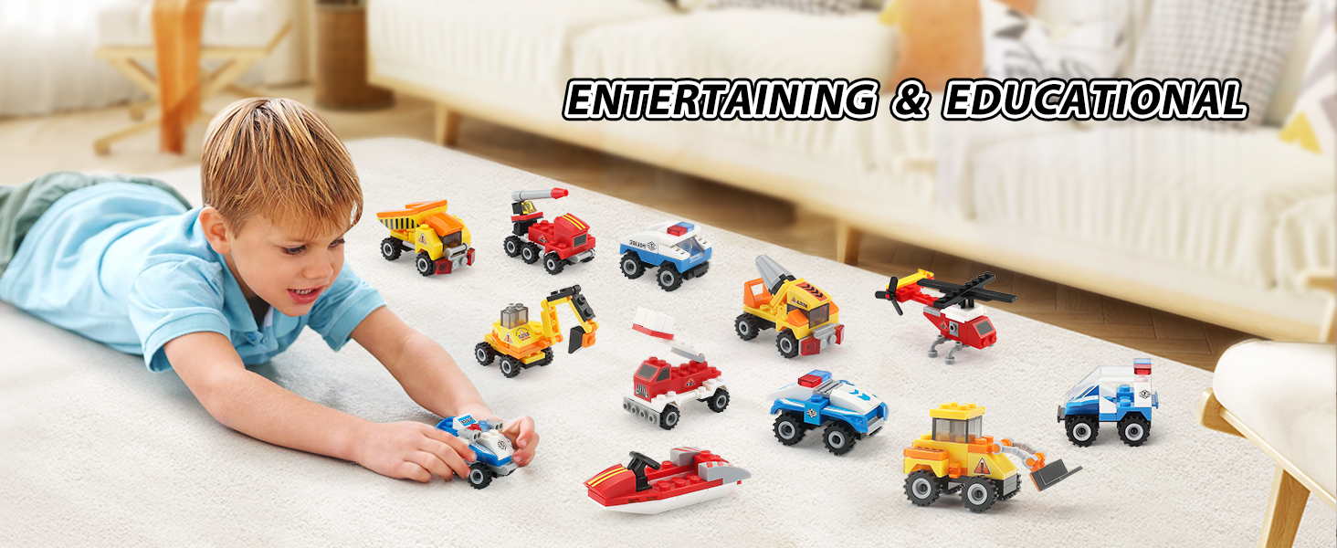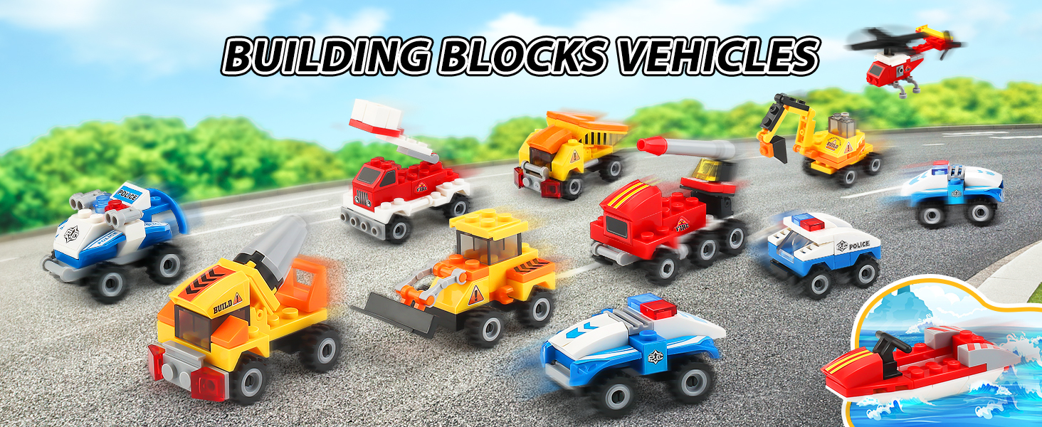 【12 cars】Contains sets of 12 building blocks cars. The joints can swing and the cars can be pushed to run.