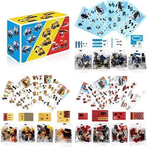 Mini Building Blocks Cars Toys Sets 12 Packs Assembly Mini Cars Toys for Boys, Girls Stem Building Car Assorted Construction Truck Fire Trucks Police Cars Party Favor Goodie Bags for Kids.