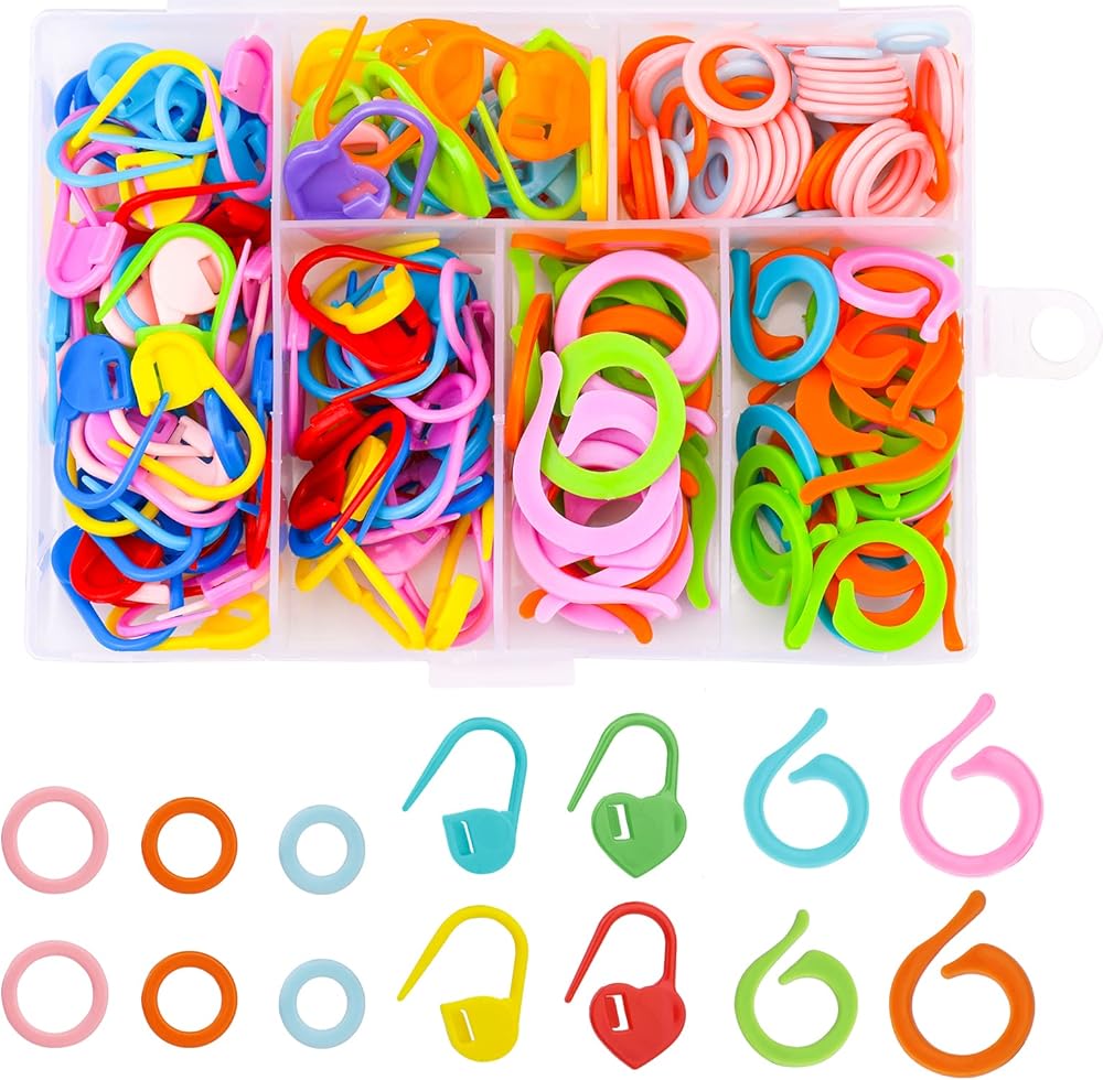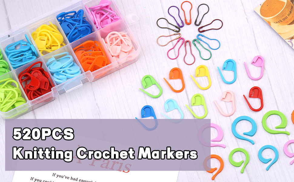 520 PCS Package Includes: Comes with 120 pcs crochet stitch marker special 10 colors, 100 pieces of knitting stitch rings: which contains 50 Pcs Small + 50 Pcs large stitch marker ring random color, 300 safety bulb pins 10 colors for your handicraft interest.