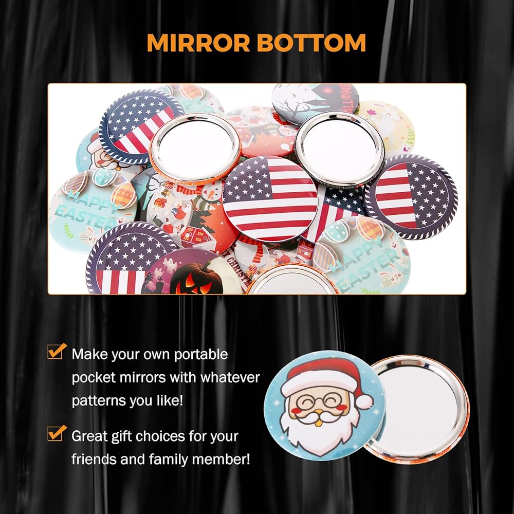 WIDELY APPLICABLE - You can make mini mirrors with different patterns. Suitable for normal family use. Also, you can choose to set up your own booth online or at markets, fairs, quickly make and sell buttons. They are a good choice of gifts for women and girls, to surprise them on any special occasion, such as Mother's Day, weddings, wedding guest gifts, birthdays, and Christmas.