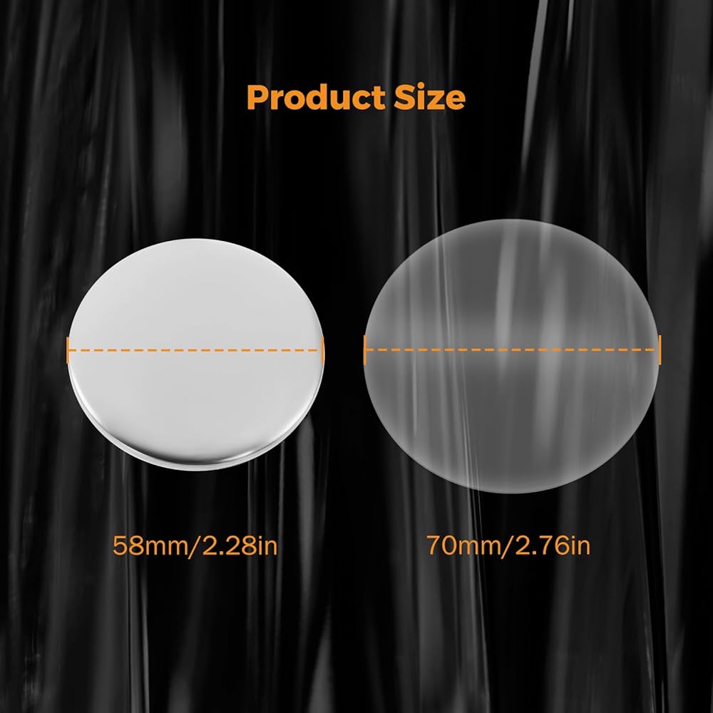 Specifications: Material: Plastic, Tinplate, Mirror. Finished Mirror Diameter: 58mm / 2.28 in (approx. 2-1/4 inch).Thin Film Diameter: 70mm / 2.76 in (approx. 2-3/4 inch).Recommended Paper Cutting Size: 68mm. NOTE: 1. Due to material fitting issues, BEAMNOVA's button parts may not be able to work for other brands of machines. It is recommended that you only purchase BEAMNOVA brand products. 2. The machine is not included. Please search BEAMNOVA button maker for the machine.