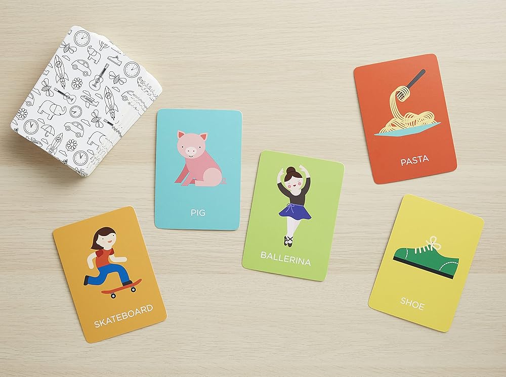 Here's a great game for the whole family Take it in turns to act out the picture for the other players – and whoever guesses what's on the card wins it The large icons make it easy for non-readers to join in the fun. Actions and noises are allowed – but no words And the first person to collect three cards wins the game. Added bonus: These can also be used as flashcards Five Color-coded Categories: Everyday Objects, Animals, On the Go, Jobs, Food. Made using recycled card and printed with vegetable inks. Conforms to CPSIA, ASTM, and CE standards. Perfect for ages 3+.