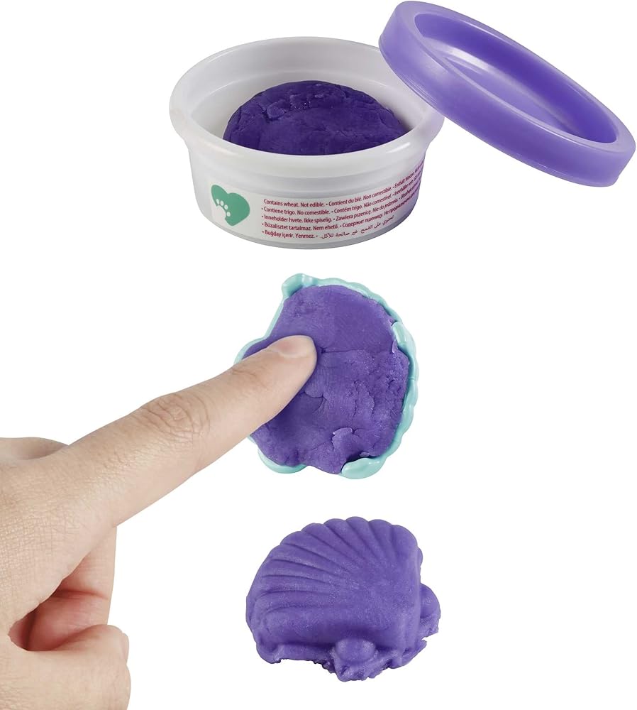 Little ones will love building sandcastles and other fun sea shapes with the play dough and molds.