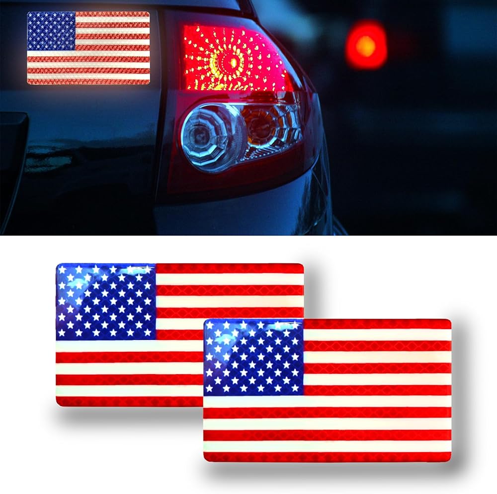 Waterproof Reflective 3D American Flag Stickers — 3x5 inch USA Flag Stickers Will not Blister or Fade— American Flag Sticker for Car, Trucks, Walls and More(2 Pack)