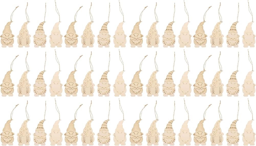 Gnome Wooden Ornaments Unfinished Wood Hanging Gnome Wooden Slices Santa Cutouts Crafts Gift Tags with Twine Ropes for Halloween Christmas Ornaments