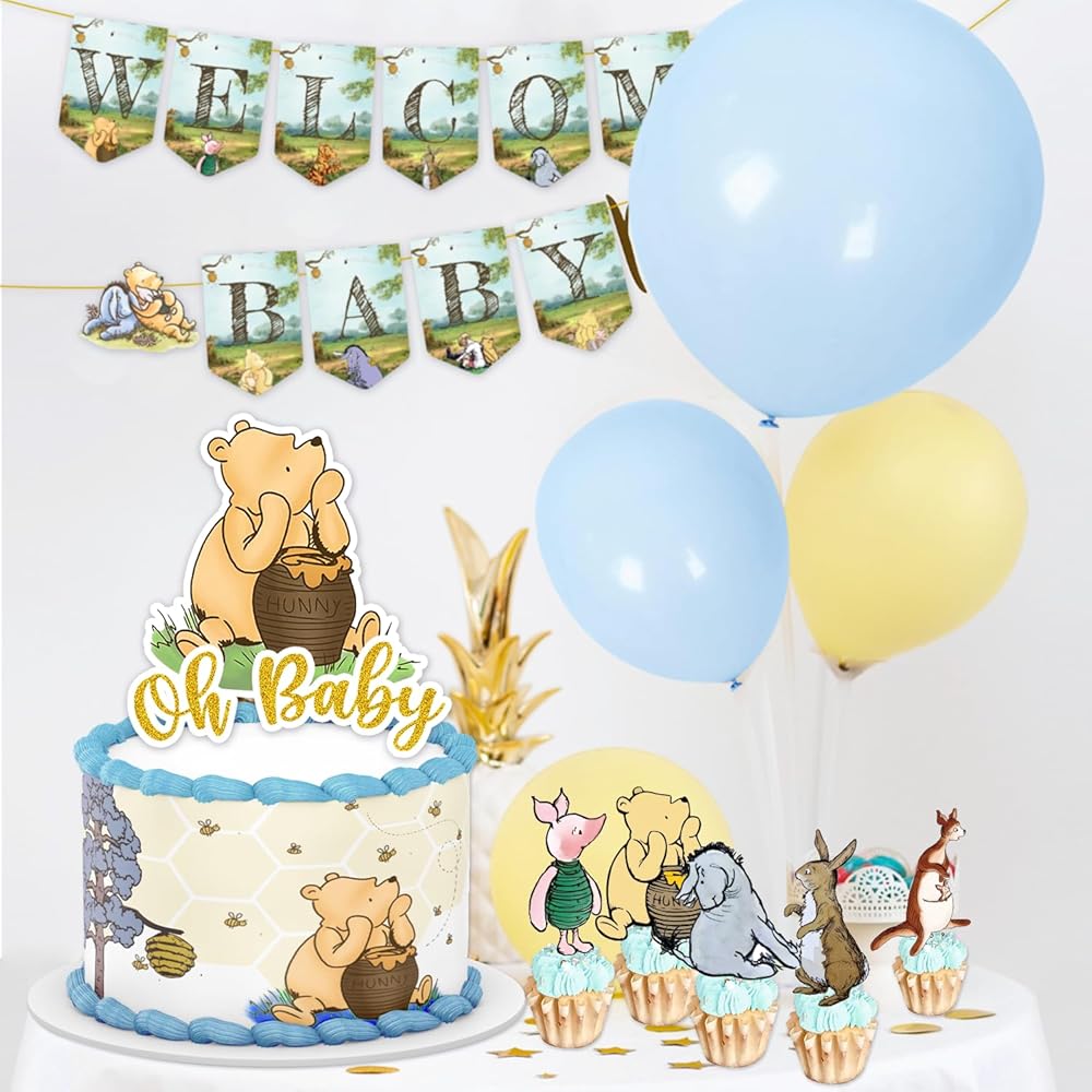• perfect for: the primary purpose of classic winnie baby shower decorations set is to enhance and elevate the overall aesthetic and theme of your baby shower. it can be used for a variety of occasions, including baby shower parties for boys and girls, theme parties for kids, gender-neutral celebrations, etc, classic winnie baby shower decorations set, making your event unforgettable