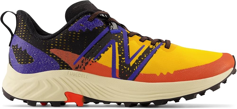 The New Balance FuelCell Summit Unknown features a Hydrohesion outsole for superior grip in wet conditions, with a forefoot Rock Stop Plate to help protect feet on uneven terrain. The bootie construction includes Toe Protect technology and a gusseted tongue for a debris-free fit. These men's running shoes are finished with a FuelCell midsole for a springy underfoot feel that drives you forward.