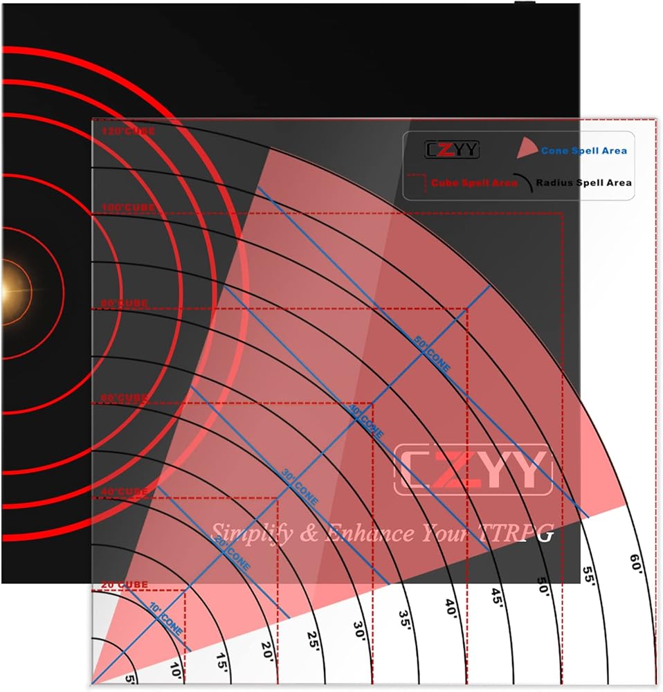 EASY TO USE & TRACK FOR SPELL - Each AOE Damage Template is laser cut from acrylic and printed with white paint to signifying the spell distance. The design of our templates allows you to place the templates into any scenario without having to move around too many miniatures and terrain pieces. Saving time with movement and spell casting!