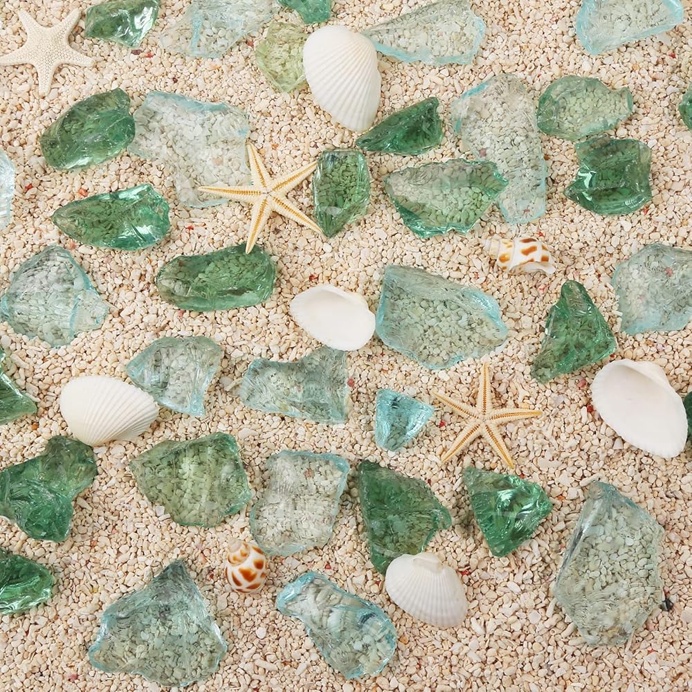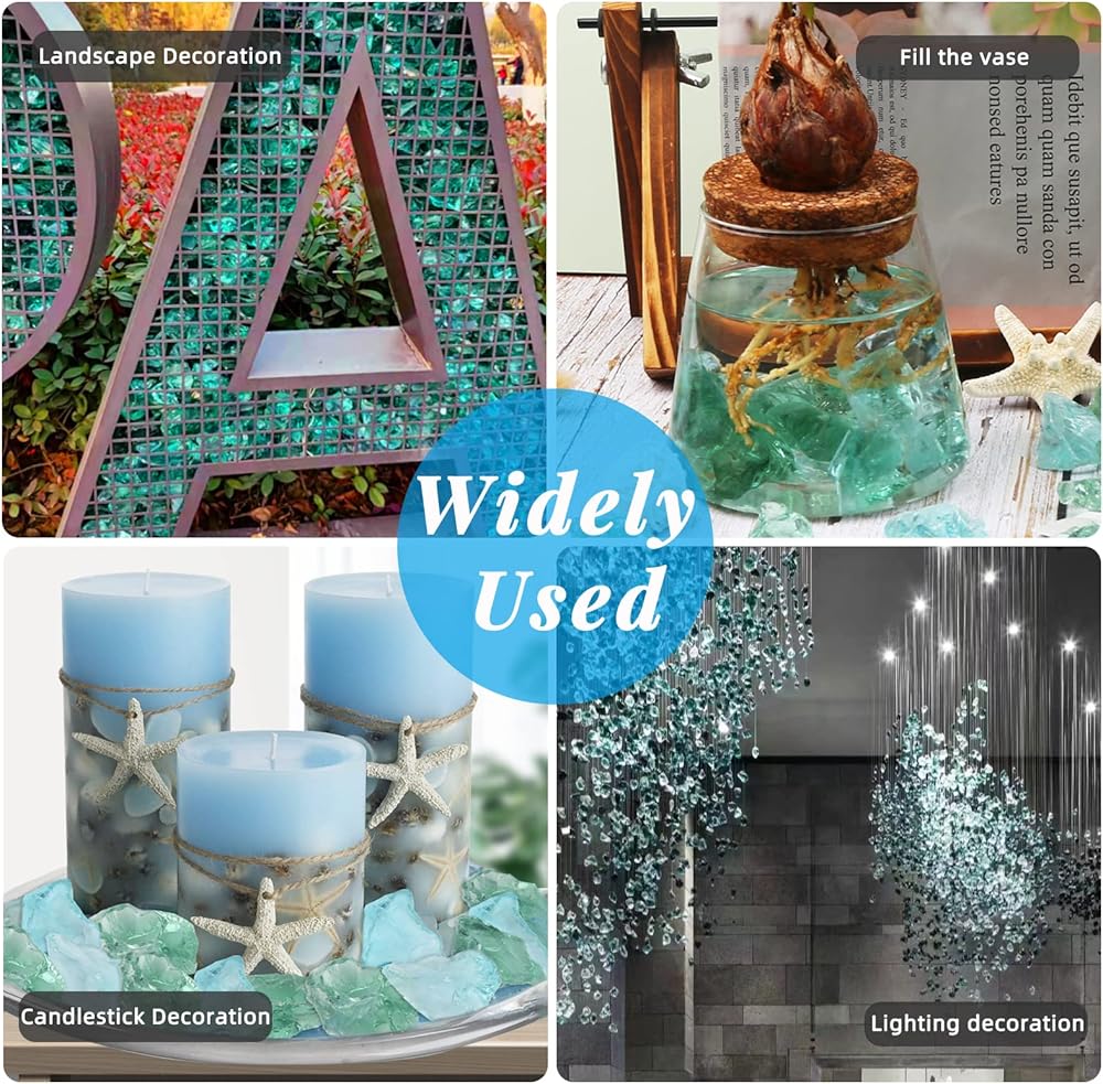 【Perfect Decoration】Whether you're decorating your home, preparing for a wedding, or enhancing your aquarium etc , our Clear Glass Filler is a must-have. Its sparkling clarity and green hue, mixed with light blue, create a captivating visual impact, making it perfect for a wide range of settings.