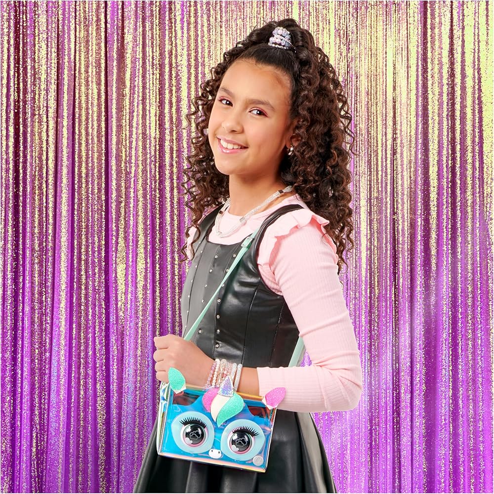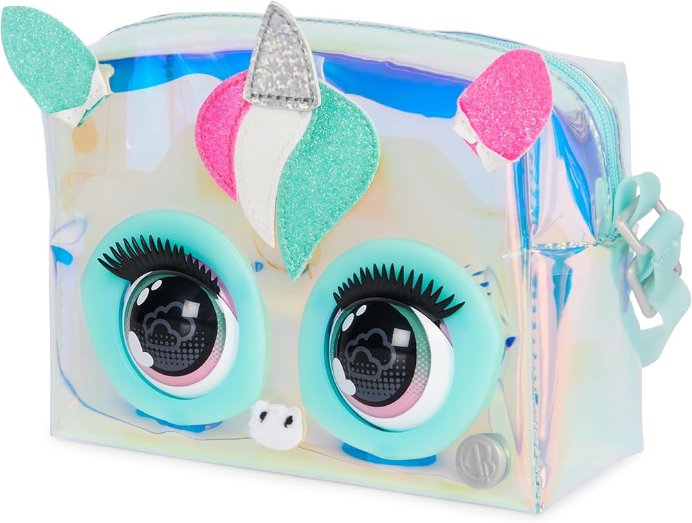 Discover the Purse Pets Cheetah Fanny Pack with its new features and new style in tune with fashion trends! This fabulous interactive belt bag is packed with many fashionable features. It reacts to touch, has bright multi-colored cheetah spots and emits over 30 sound and light effects. The Purse Pets Cheetah features beautiful grained faux leather details, expressive eyes, a metal zipper and an adjustable Purse Pets printed strap to allow you to carry your fanny pack however you want. When you go out and on the go, it makes fun sounds when interacting with you and its spots light up with a rainbow waterfall effect. Tap her head to speed up the color change, or hold it for a few moments to pick a solid color to match your outfit. In Rainbow Madness mode, discover the rhythms of your Cheetah belt bag. Adjust its strap and wear the Purse Pets Cheetah belt bag across the shoulder, or around the waist. Personalize your fanny pack with a Luxey Charms character (sold separately) for an even more trendy Purse Pets look! Measuring approximately 9cm (H) x 25.5cm (W) x 6cm (D), take your super cute belt bag wherever you go, it can hold all your essentials.