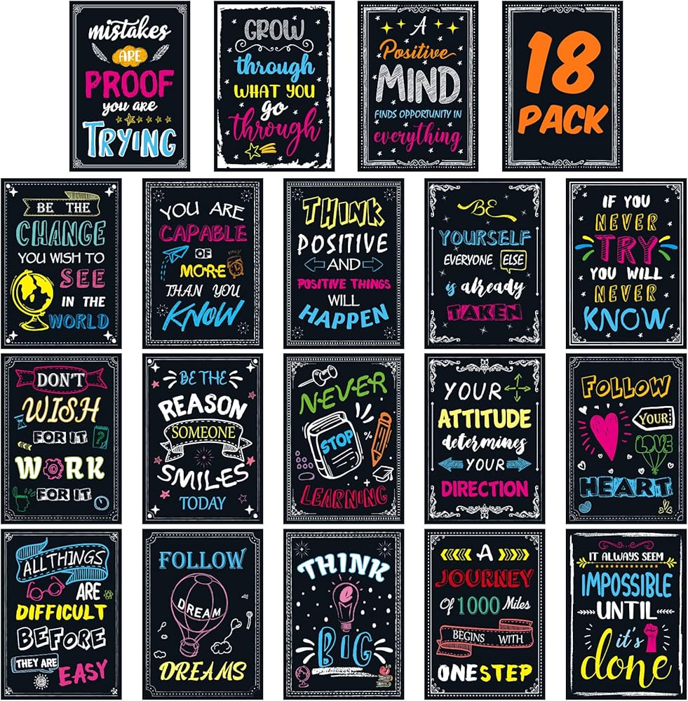 Yoklili 18 Pack Motivational Posters touch on every aspect of your school's Positivity theme. Ideal for teachers to place around their classroom to encourage their students and kids achieve their goals.