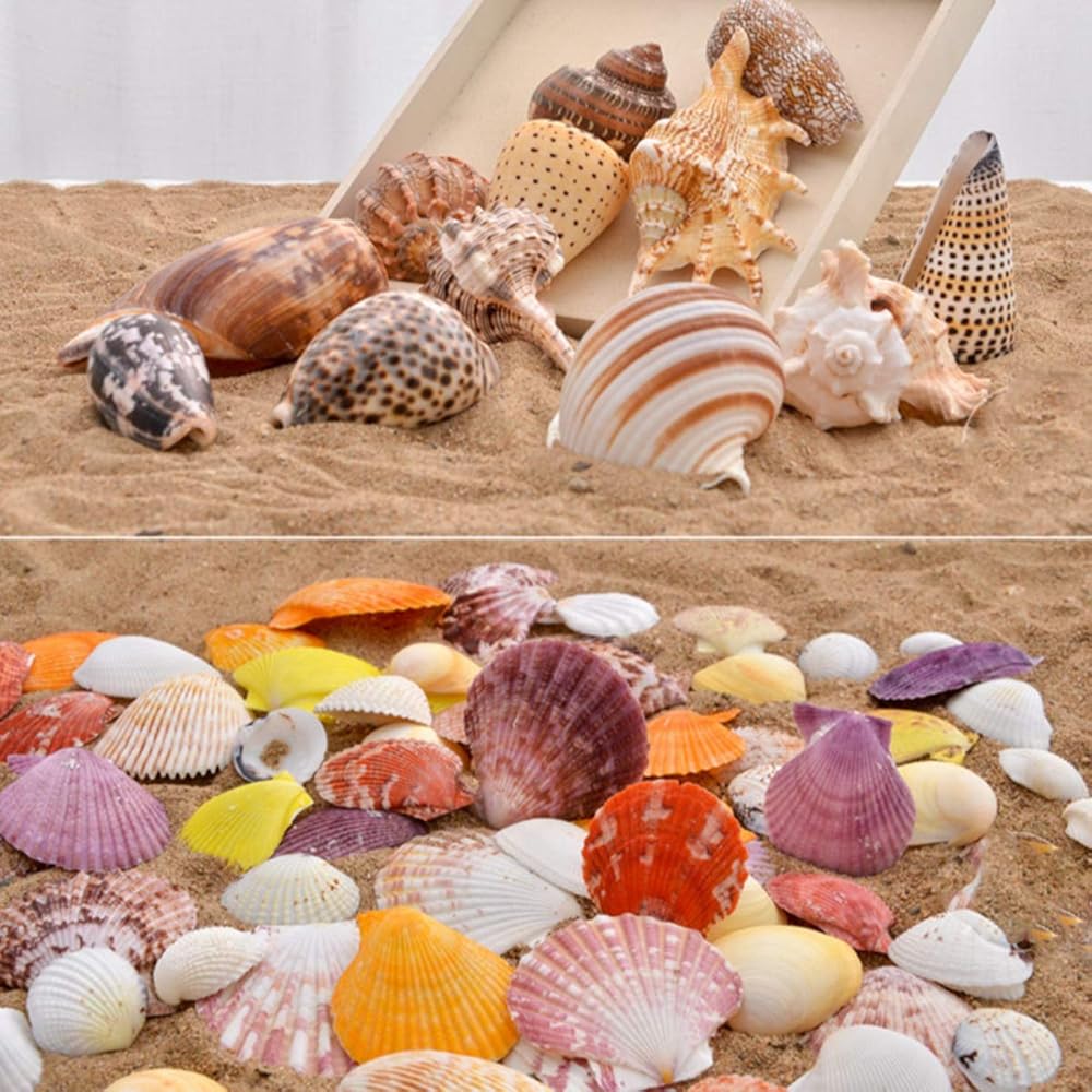 90 Pcs Sea Shells Mixed Ocean Beach Seashells, Colorful Natural Seashells Perfect Accents Fish Tank, Home Decorations, Beach Theme Party, Candle Making, Wedding Decor, DIY Crafts, Fish Tan