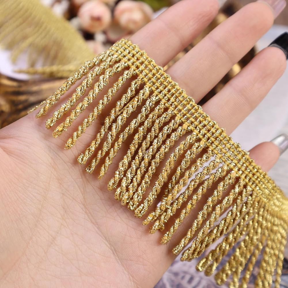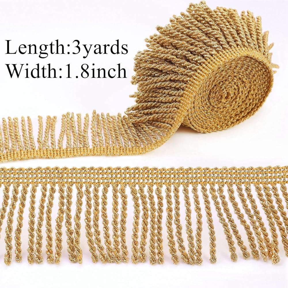 - [Package includes]: You will receive a pack of gold fringe trim. Length: 3 yards; Width: 1.8 inch