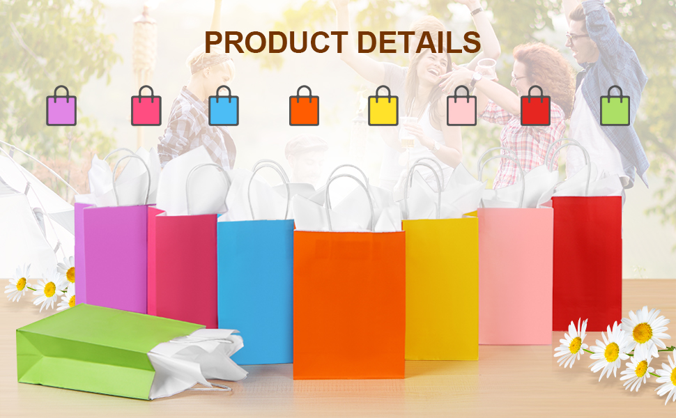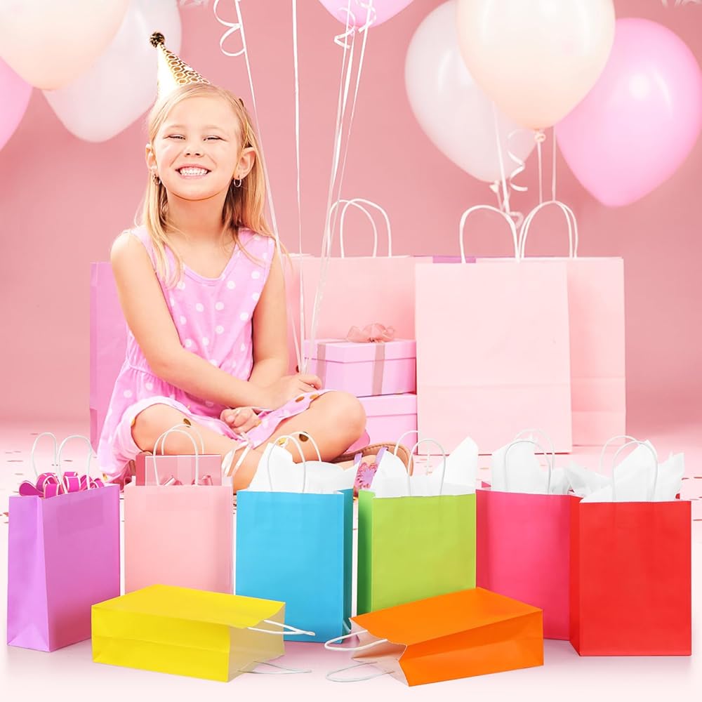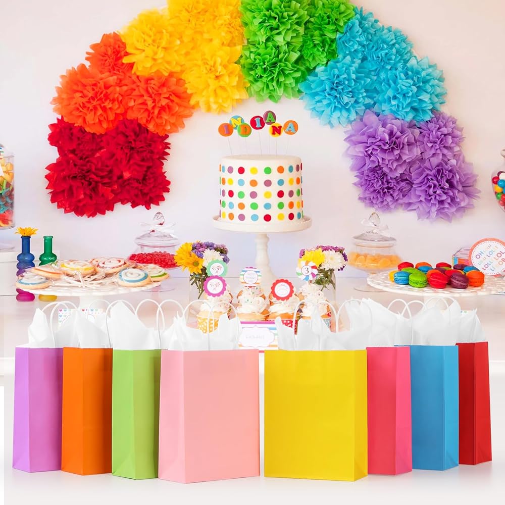 [Wide Applications] These paper bags with tissue paper are sturdy enough to carry multiple items, ranging from laptops, magazines, puzzles, clothing, candles, toys, and more. The versatile gift bags can be used for various celebrations, such as baby showers, birthdays, weddings, Mother's Day, Christmas, Easter, and anniversary party favors.