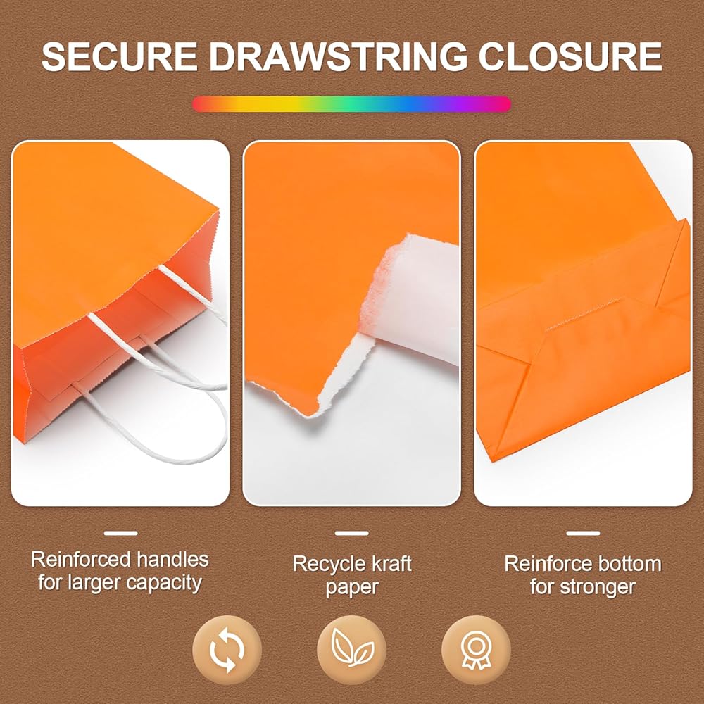 [Premium Quality] These gift bags are made of kraft paper which is durable and it's easy to stand up. The material are eco-friendly and reusable. You can store and reuse them multiple times.