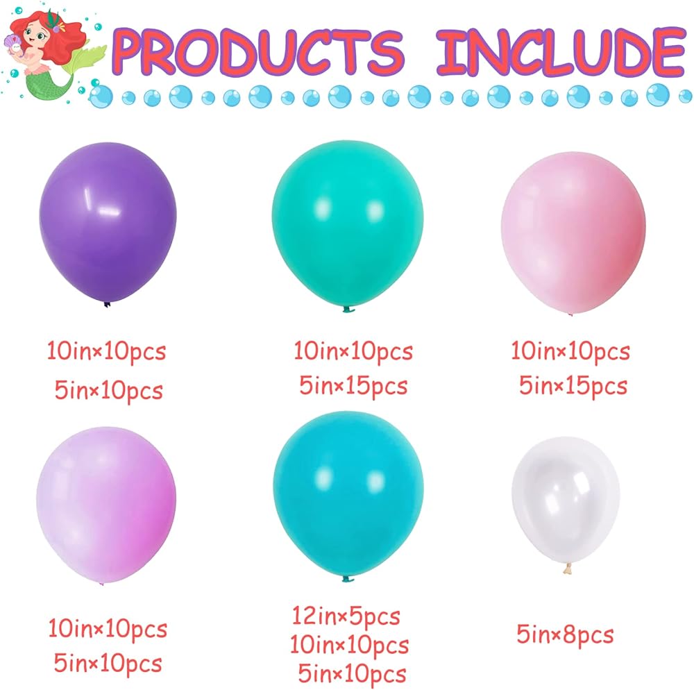 Mermaid Theme Party Decoration Balloon Garland Set, Mermaid Birthday Party Supplies, Latex Balloons for Mermaid Theme Party Mermaid Party Decorations Kids Baby Shower Birthday Party Supplies