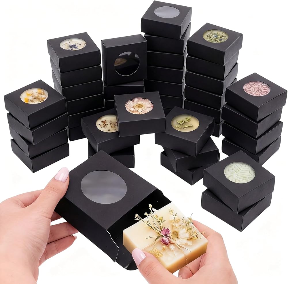 Chinco 30 Pcs Square Soap Boxes for Homemade Soaps Candle 3 x 3 x 1.2 Inch Soap Boxes with Clear Window Small Gift Wrapping Box for Soaps Packaging Bakery Cookies Candy Party Favor Supplies