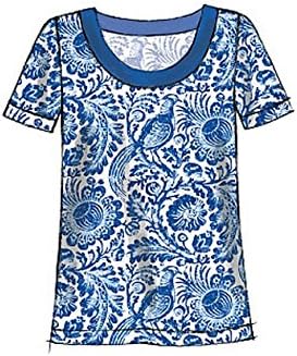 Misses' tops: semi-fitted, pullover tops have neckline variations and stitched hems. C, d: neck band. Designed for medium-weight woven and knits only. Fabrics: challis, crepes, lawn, cotton knit. With nap without nap with or without nap size combinations: Y(-Small-Medium), ZZ(Large--).