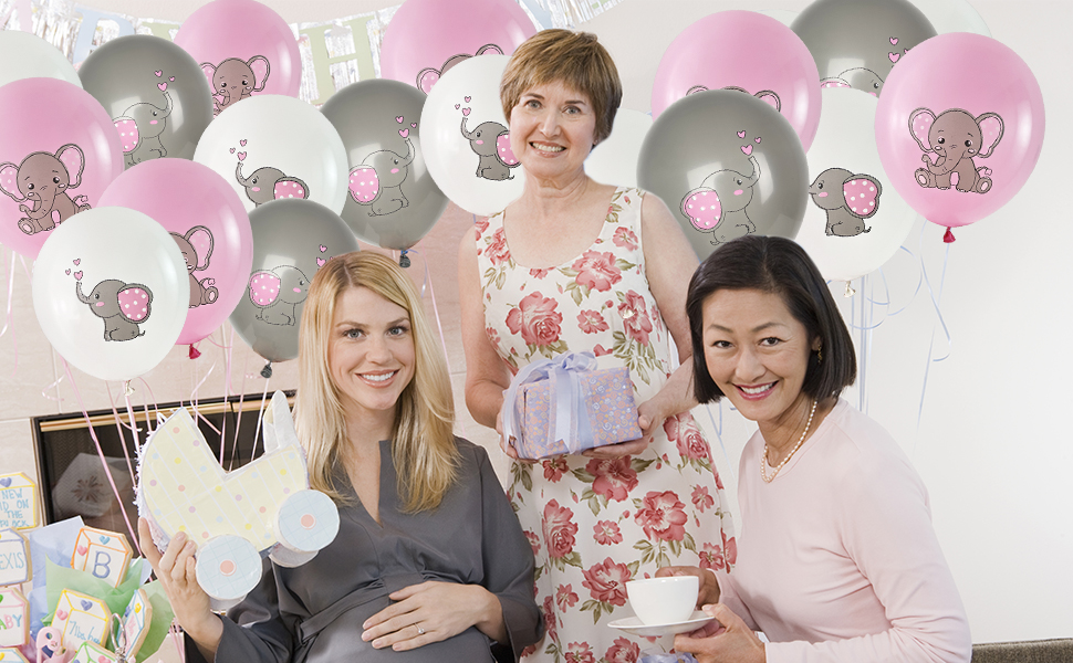 ELEPHANT BABY SHOWER BALLOONS PREMIUM MATERIAL: The elephant balloons are made of high quality latex, Strong and thick, each balloon was manually tested Not easy to damage No irritating odor very safe for baby.