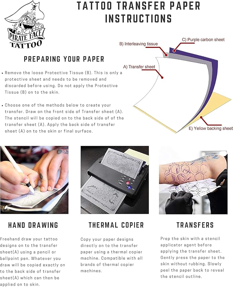 Tattoo Transfer Paper, Pirate Face Tattoo 25 Sheets Stencil Transfer Paper for Tattooing