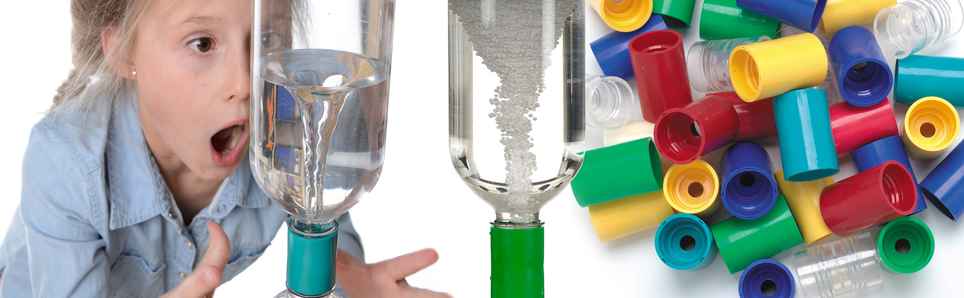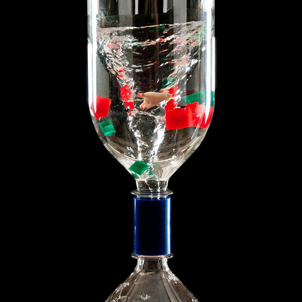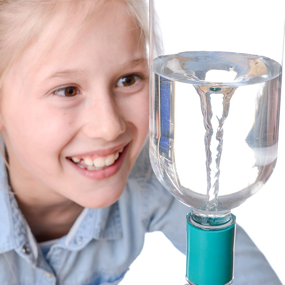 Children may have heard stories about tornadoes that can carry entire houses away and set them down somewhere else, like on top of a nasty witch. But do they understand how tornadoes form? With the Tornado Tube from Steve Spangler Science, children of age four and up can create a water bottle tornado that they can see right in front of them. All it takes is a couple of one-liter bottles that are connected with the Tornado Tube and some water. Inverting a full bottle and applying a swirling action creates an energy pattern that mimics that of a real tornado. Vortexes form frequently in nature, and we see them in natural whirlpools in rivers, in some weather patterns, and even in astronomy in the activity of entire galaxies. They occur when there are differences in the speeds that fluids or gases are traveling, and with the Tornado Tube, children can watch it happen. Wow children in the classroom with this exciting tornado in a bottle experiment, or have children explore the wonders of weather on their own with individual tornadoes in a tube. Our Tornado Tube kit comes with multiple pieces, so you can create a classroom full of cyclone tubes all at once!