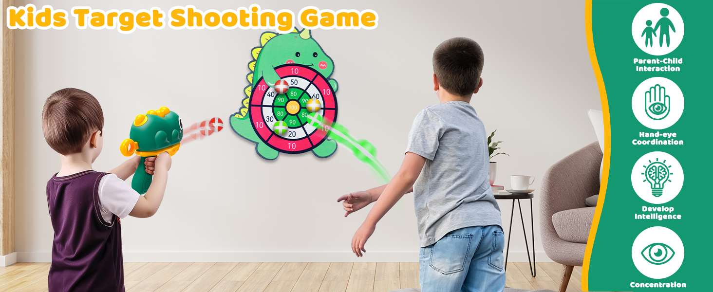 Dart Board Games for 3 4 5 6 7 8 9 10 11 12 Year Old Kids, 2 Mode Shooting Toys Indoor Outdoor Toys for Kids Boys Girls, Shooting Party Game Gun Toys Kids Christmas Birthday Gifts (Dinosaur)