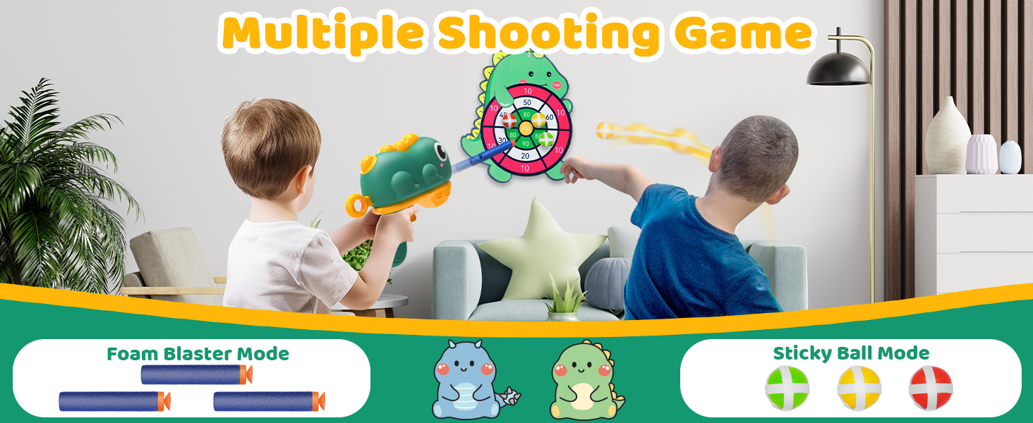 【2 Modes to Play Kids Target Shooting Game】: Different from traditional shooting game toys for kids, our sticky ball dart board provides two modes to play. First is sticky ball mode, in this mode you have 2 ways to play, kids can use a gun to launch dart balls, feel the excitement of shooting, or throw the balls with their hands, exercise accuracy and hand-eye coordination. Second mode is foam blaster mode, in this way kids shoot suction blue dart bullets at the smooth surface like glass.