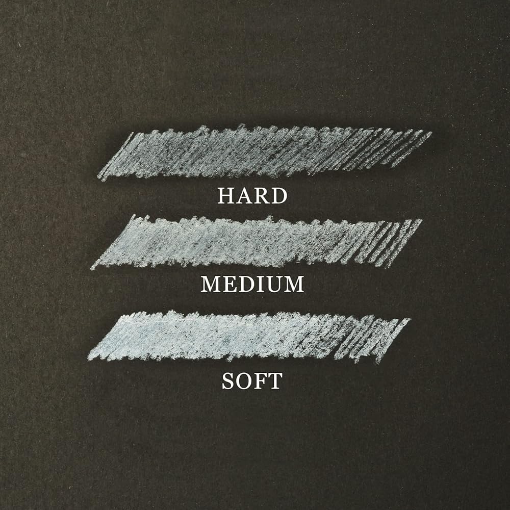 مجموعة أقلام فحم بيضاء احترافية تتضمن 3 درجات مختلفة (ناعمة ومتوسطة وصلبة).