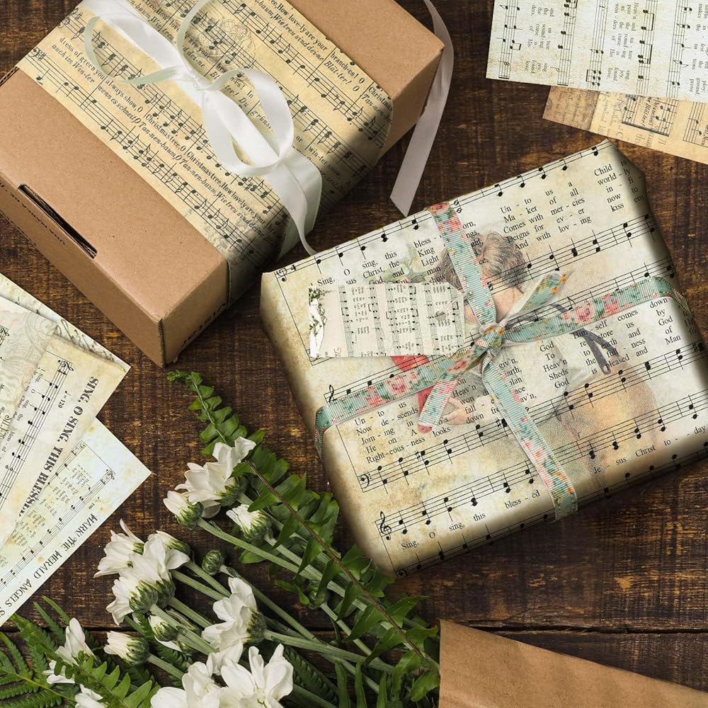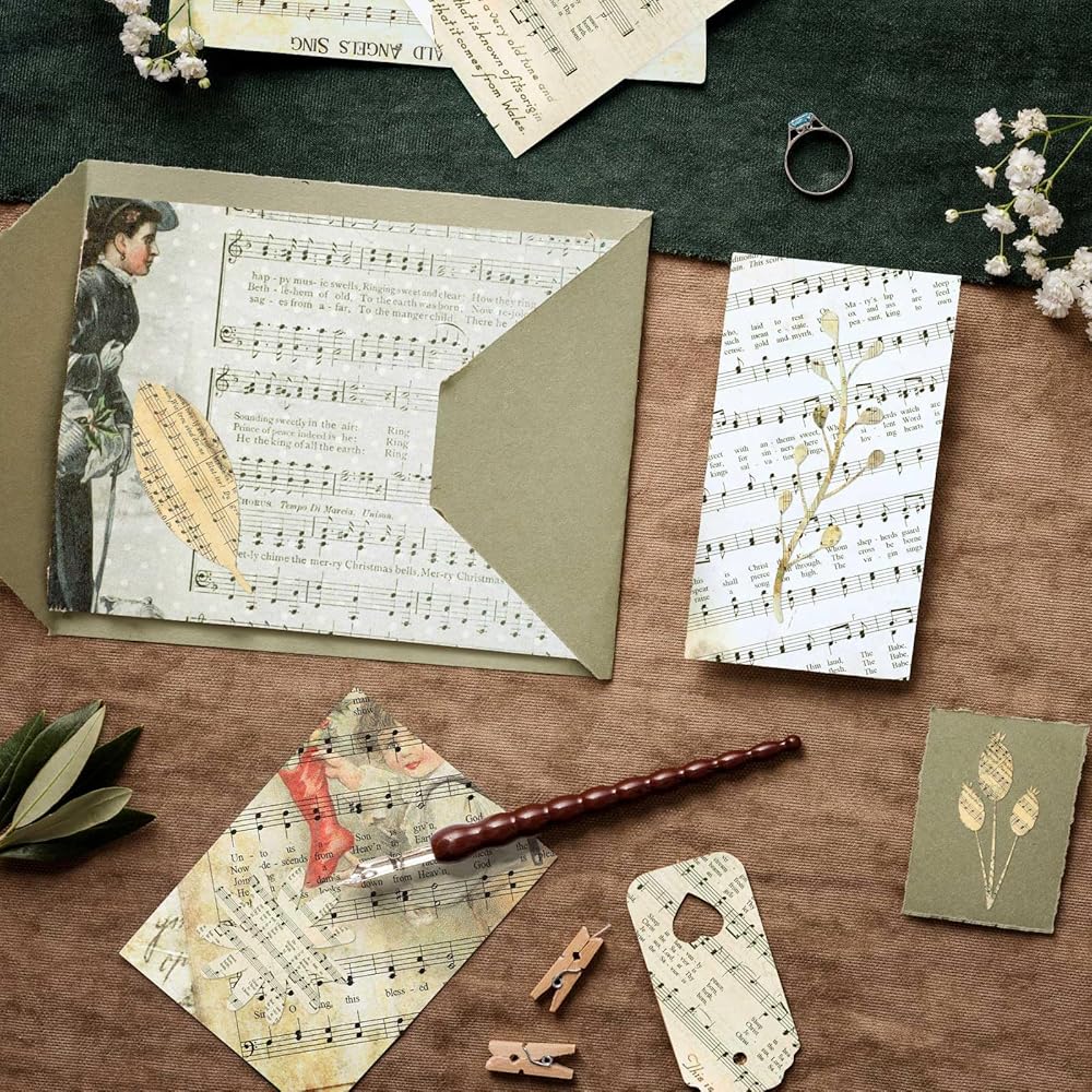 Each decorative paper features beautiful designs of notes, sheet music, and characters, showcasing a unique artistic flair.