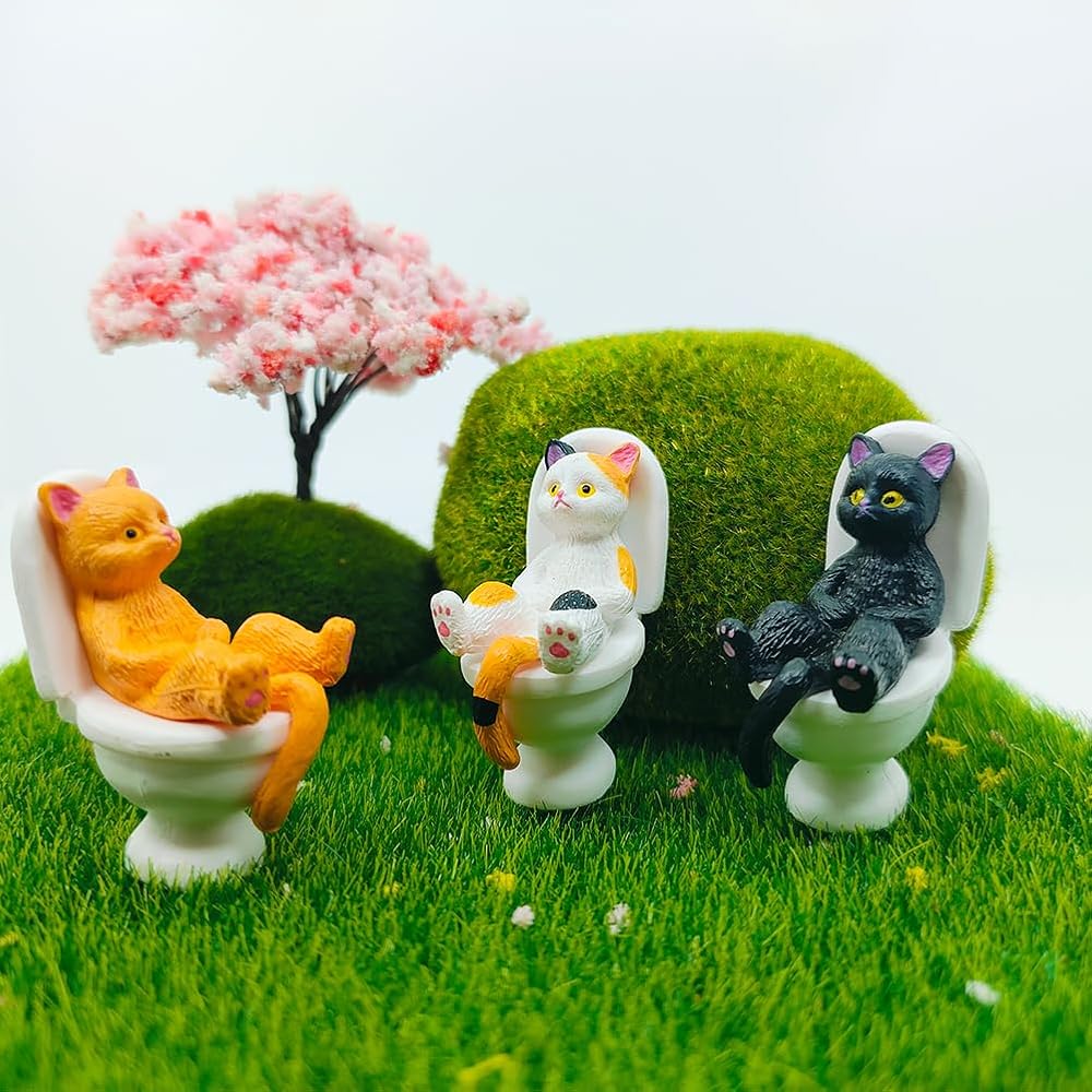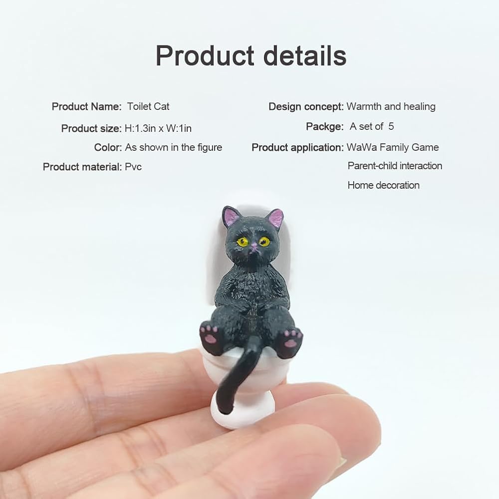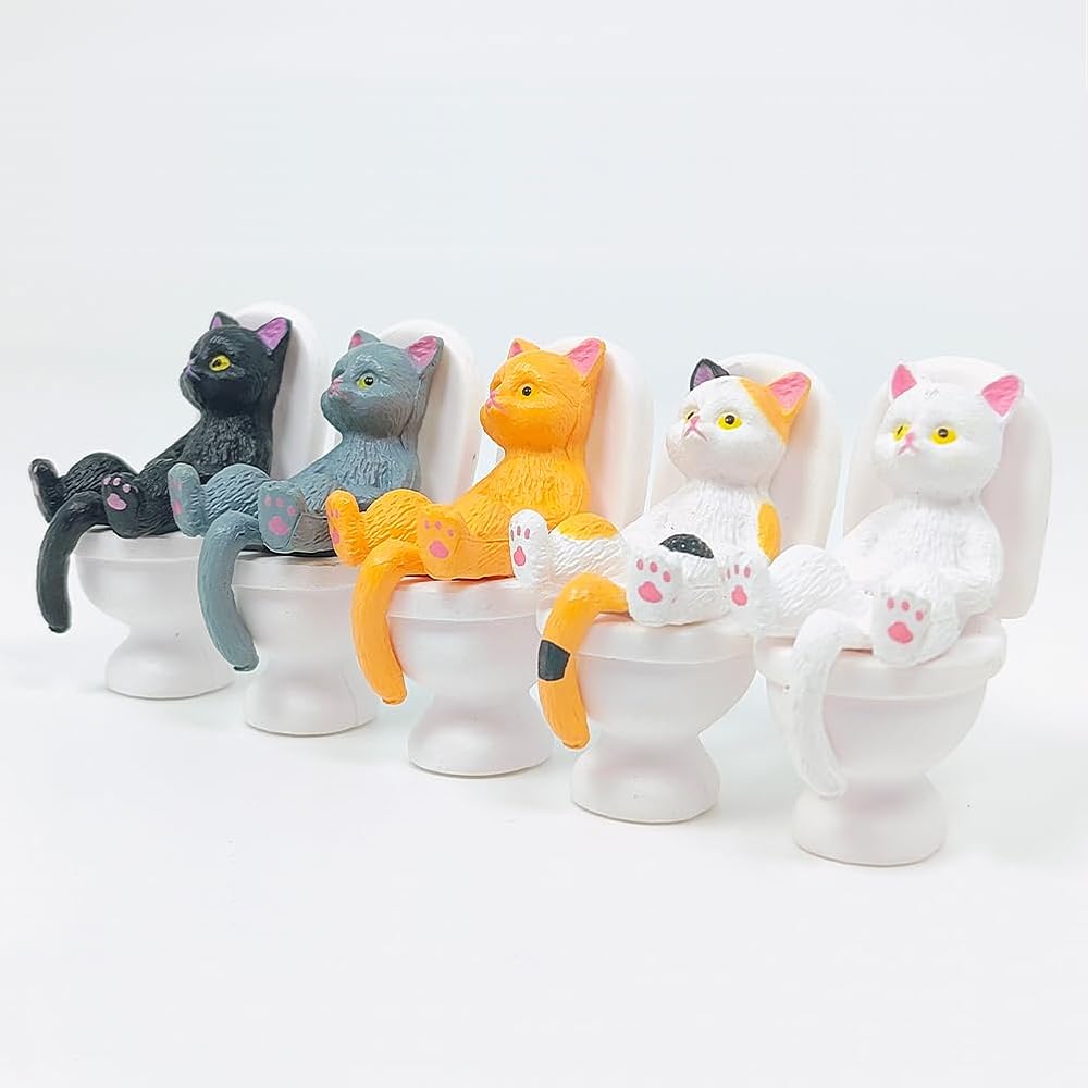 Cat on Toilet 5 Pcs Cat Figure Miniature Cake Topper Mini Cat Figurines Kitty Figures for Crafts,Easter Eggs,Desk Decoration,Succulent Plant Pot Decoration and Birthday Gift