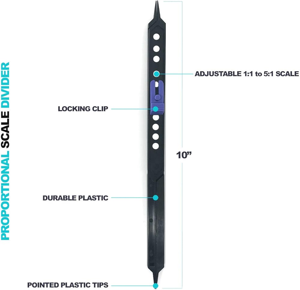 Adjustable - The Pixiss Proportional Divider for artists is an adjustable caliper tool from 1:1 to 5:1 scale for maximum flexibility. Adjusted for any subject size.
