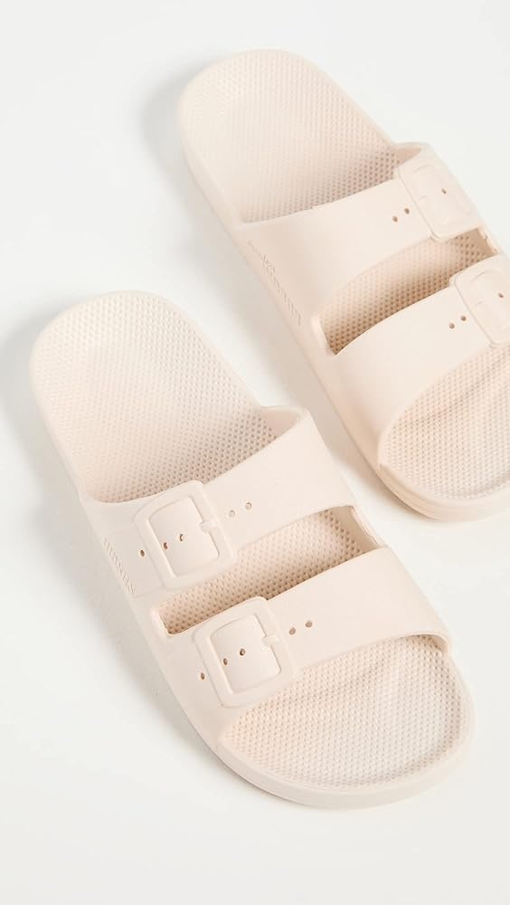 Decorative, molded buckles, Molded and textured footbed, Waterproof and non-slip, Signature milk and honey scent
