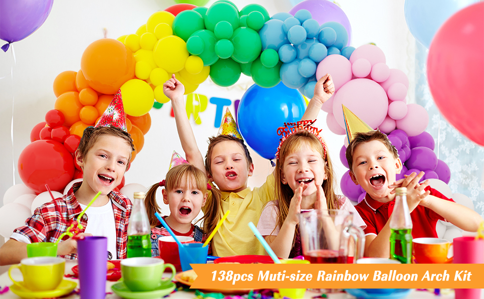 Wide application: The rainbow color balloon set is suitable to make rainbow balloon arch or garland to decorate birthday party, graduation party, anniversary celebration, wedding ceremony and so forth.
