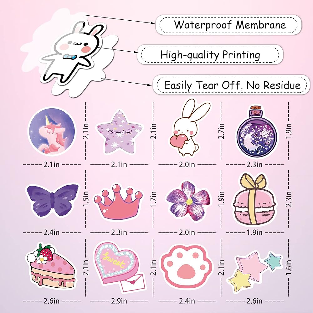 💖Perfect Gifts For Kids&Girls💖: Our kawaii stickers are the perfect choice for you as birthday gifts for kids, teens, and girls. Aesthetic vinyl stickers can be used as super cute decoration supplies for laptop, skateboard, water bottle at home and outdoors.