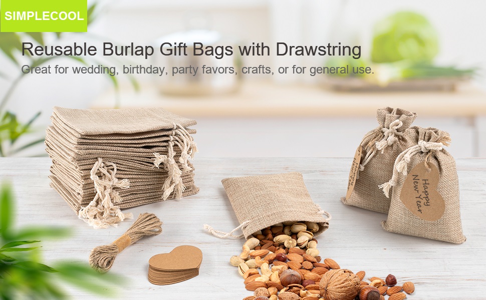 SIMPLECOOL 20pcs Burlap Gift Bags. Small Drawstring Gift Bags Jewelry Bags. Reusable Burlap Bags for Birthday, Party, Wedding Favors, Christmas, Art and DIY Craft. (5x7)