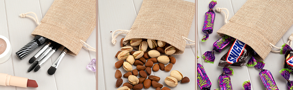 💕 PREMIUM QUALITY BURLAP BAGS JEWELRY BAGS. These burlap gift bags are made from high quality burlap which offers great strength and durability. Also, since it's created from natural jute fiber, the bag is environmentally friendly, breathable, washable and reusable.