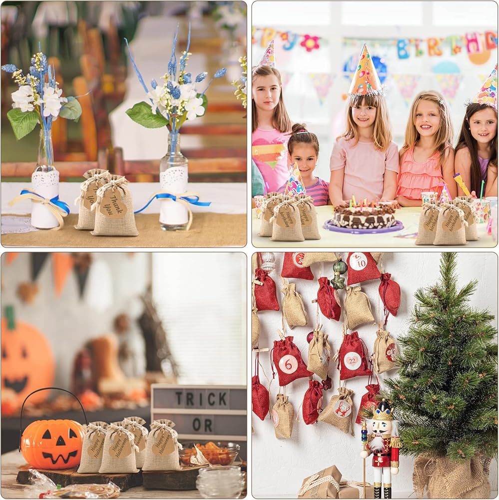 💕 DRAWSTRING GIFT BAGS WITH METICULOUS HANDCRAFT. The drawstring design makes these burlap bags easier to open and close, and can secure the contents inside well to avoid loss. Each gift bag is carefully sewn by hand, so the actual product may vary slightly to that shown in the image.