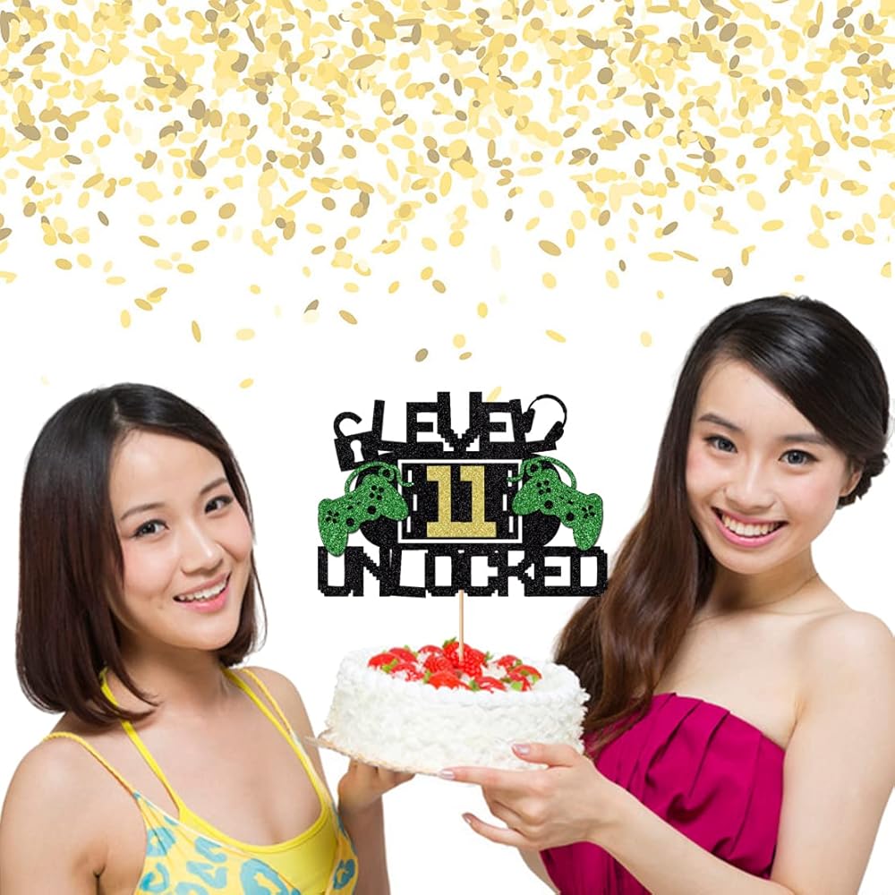 Qerleny Level 11 Unlock Cake Toppers Video Game Cake Toppers children's video game birthday decoration supplies Y