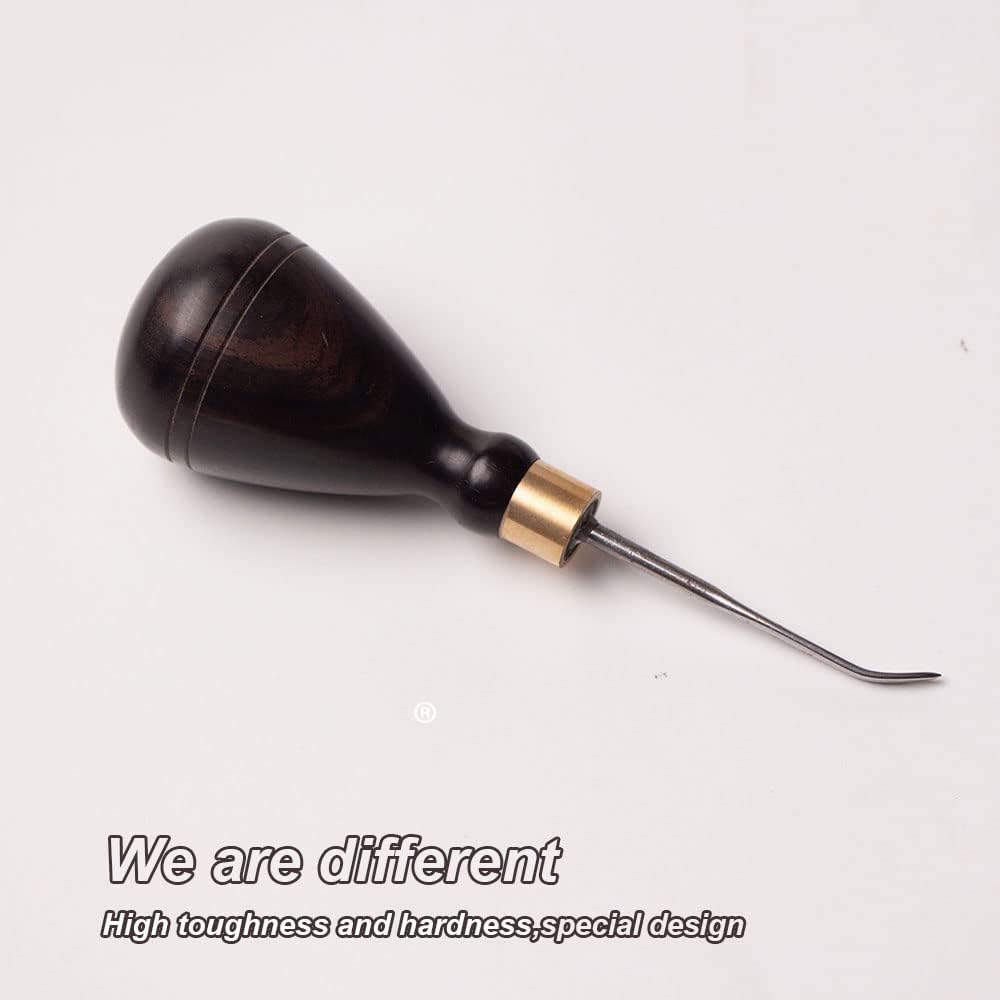 juneTree Mr.Tomato Elbow Cone Shape Awl Tailors Awl Wooden Handle Scratch Awl Sewing Awl Tool for Leathercraft Leather Hole Punch