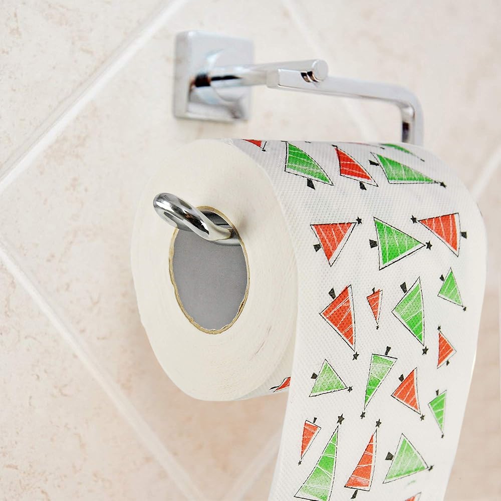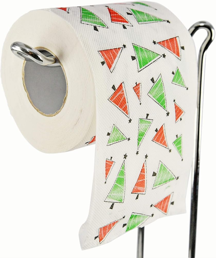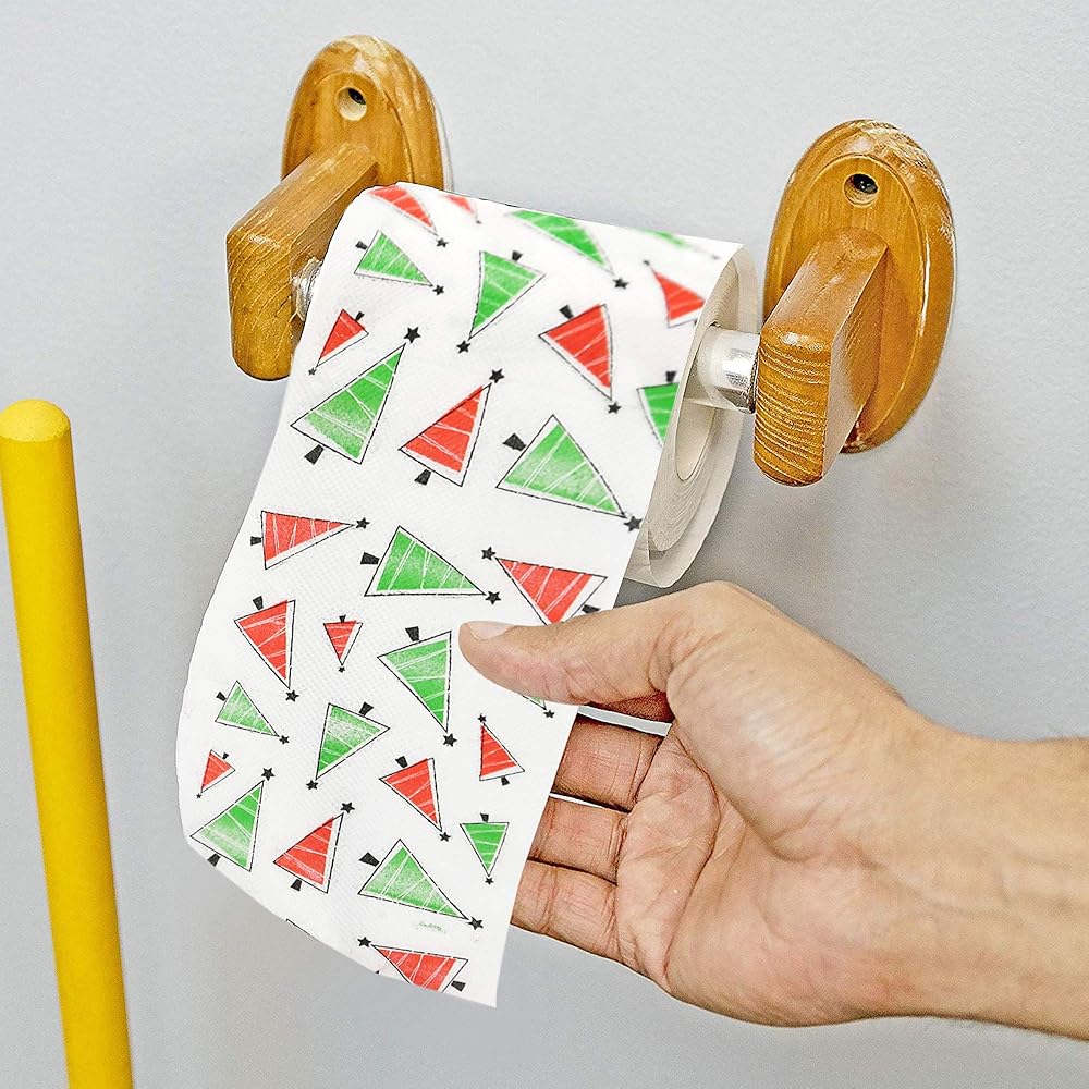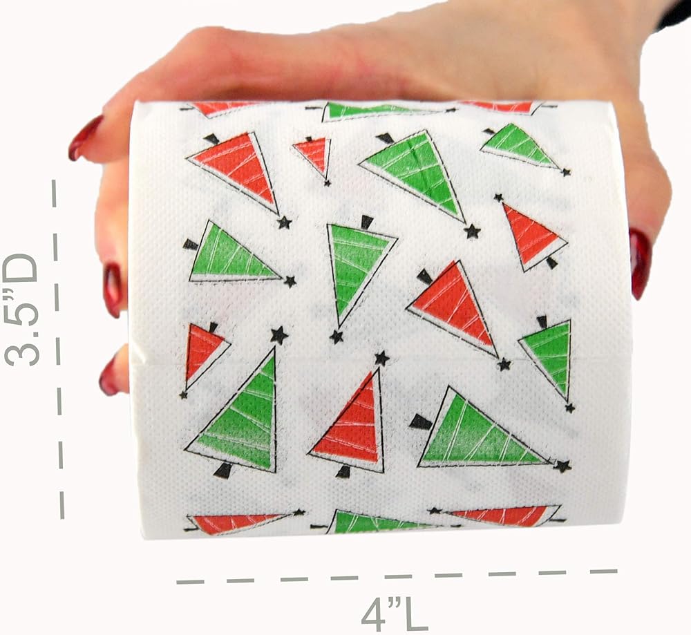 FESTIVE DECOR: If you are looking for a way to get your family in the holiday spirit, this festive roll of Christmas Trees Toilet paper is the way to go! This toilet paper roll is decked out with a bright red and green Christmas Trees print-on illustration. Decorate every inch of your home right down to the tp roll.