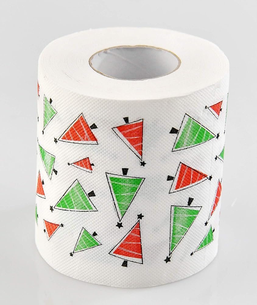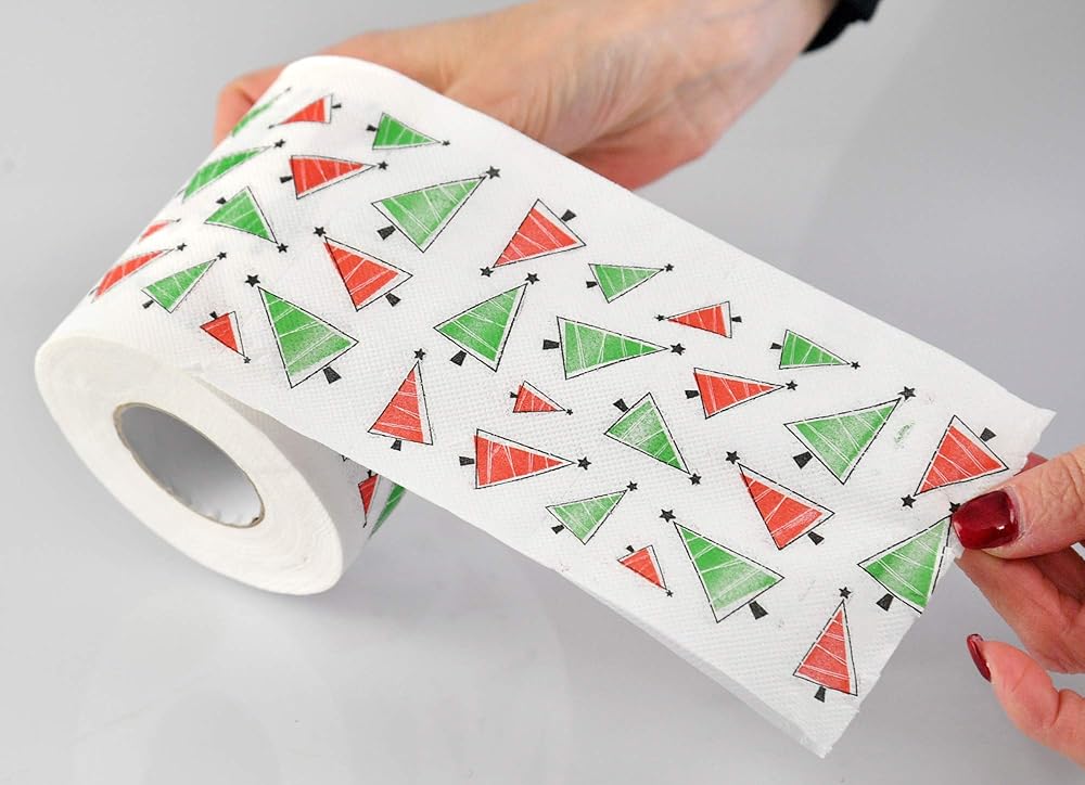 FUNCTIONAL: This amusing, thick layer toilet paper roll not only makes a great gimmick gift and adds a pop of color and Christmas cheer to your washroom but also works well and won't smudge or smear when you use it. Our humorous bath tissue roll is even great for pranking friends and family. Use this roll to tp your friend's room or your family's Christmas tree.