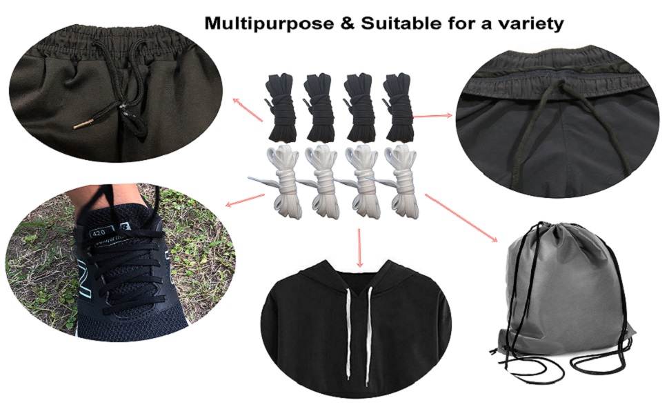 - APPLICATIONS - The replacement draw strings cord are suitable used for yoga pants, exercise suits, coats, sweatpants, shoes, hats and so on,