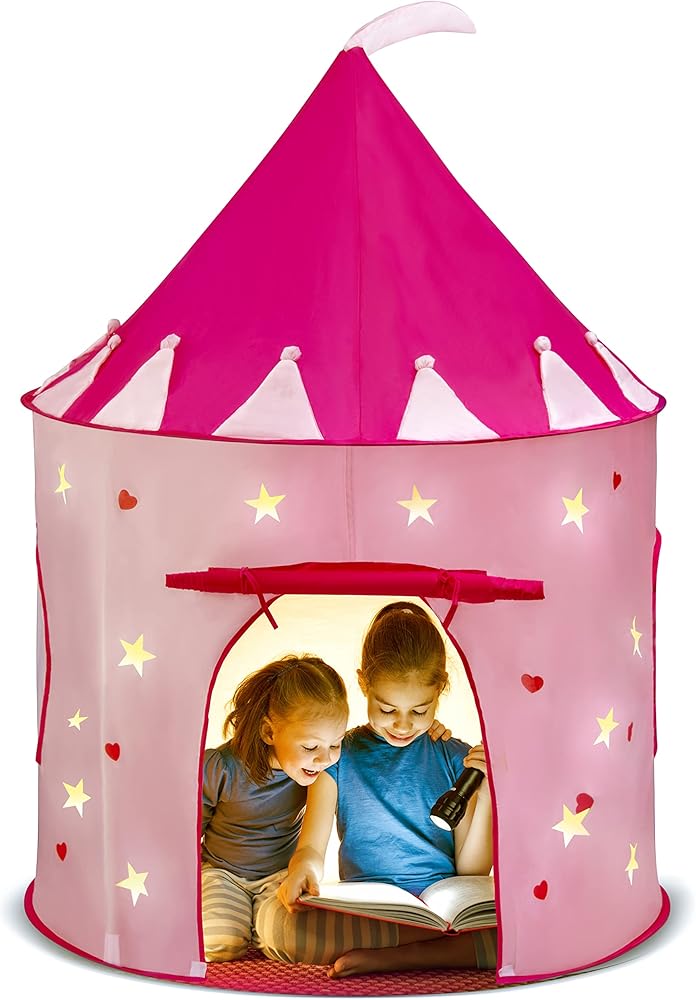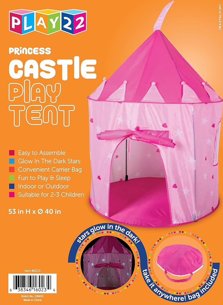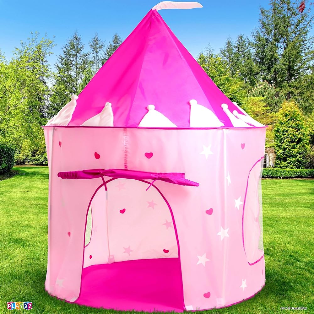 Play22 Play Tent Princess Castle Pink - Features Glow in The Dark Stars - Portable - Kids Pop Up Tent Foldable Into A Carrying Bag - Indoor and Outdoor Use - Original