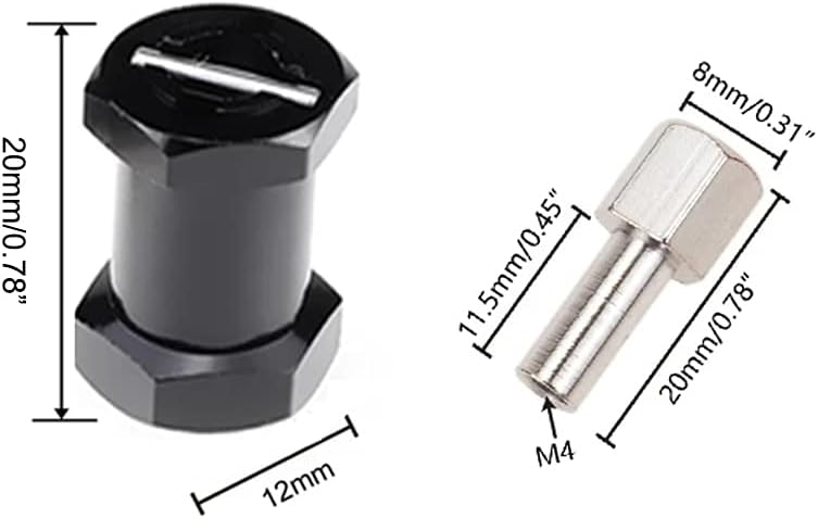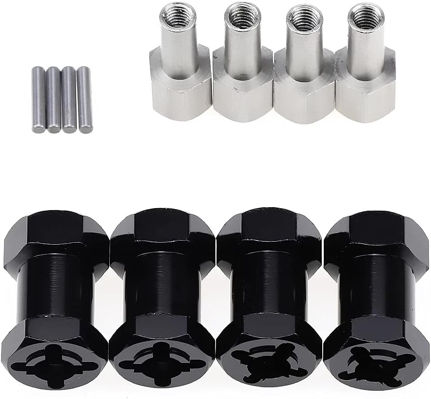 4Pcs 12mm Aluminum Wheel Hex Hub 20mm Offset Extension for Axial scx10 D90 90046 Tamiya MST 110 RC Car Crawler (20mm, Black)