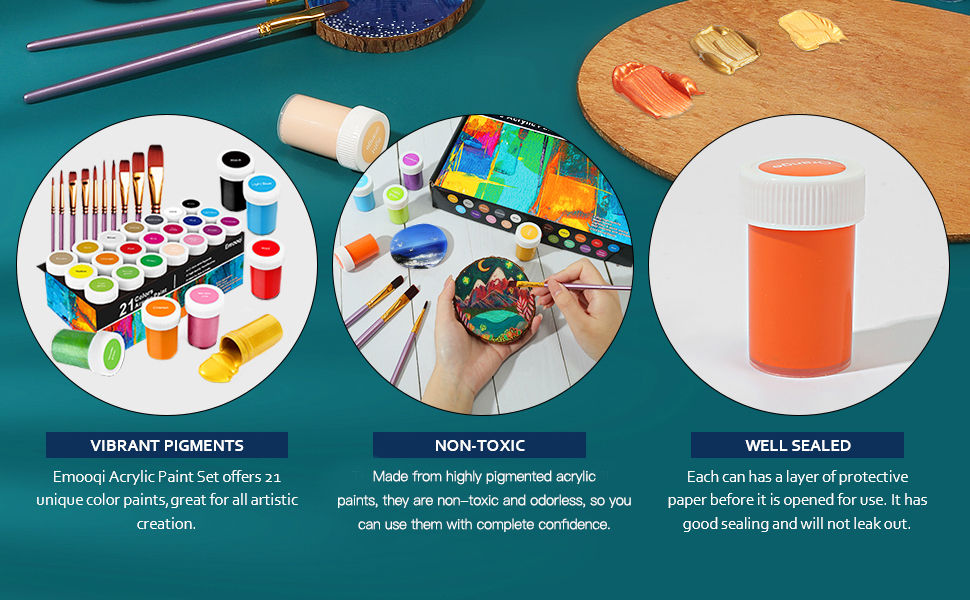 صبغة عالية ومتانة فائقة: احصل على مجموعة طلاء أكريليك اموكي وابدأ في صنع الفن! تتضمن مجموعة الاختيار هذه 21 برطمان × 20 مل و10 فرش مجانية، حتى تتمكن من بدء عملك الحرفي بمجرد فتح الصندوق. نحن على يقين من أنك ستستمتع بالرسم بمجموعة متنوعة من الألوان!